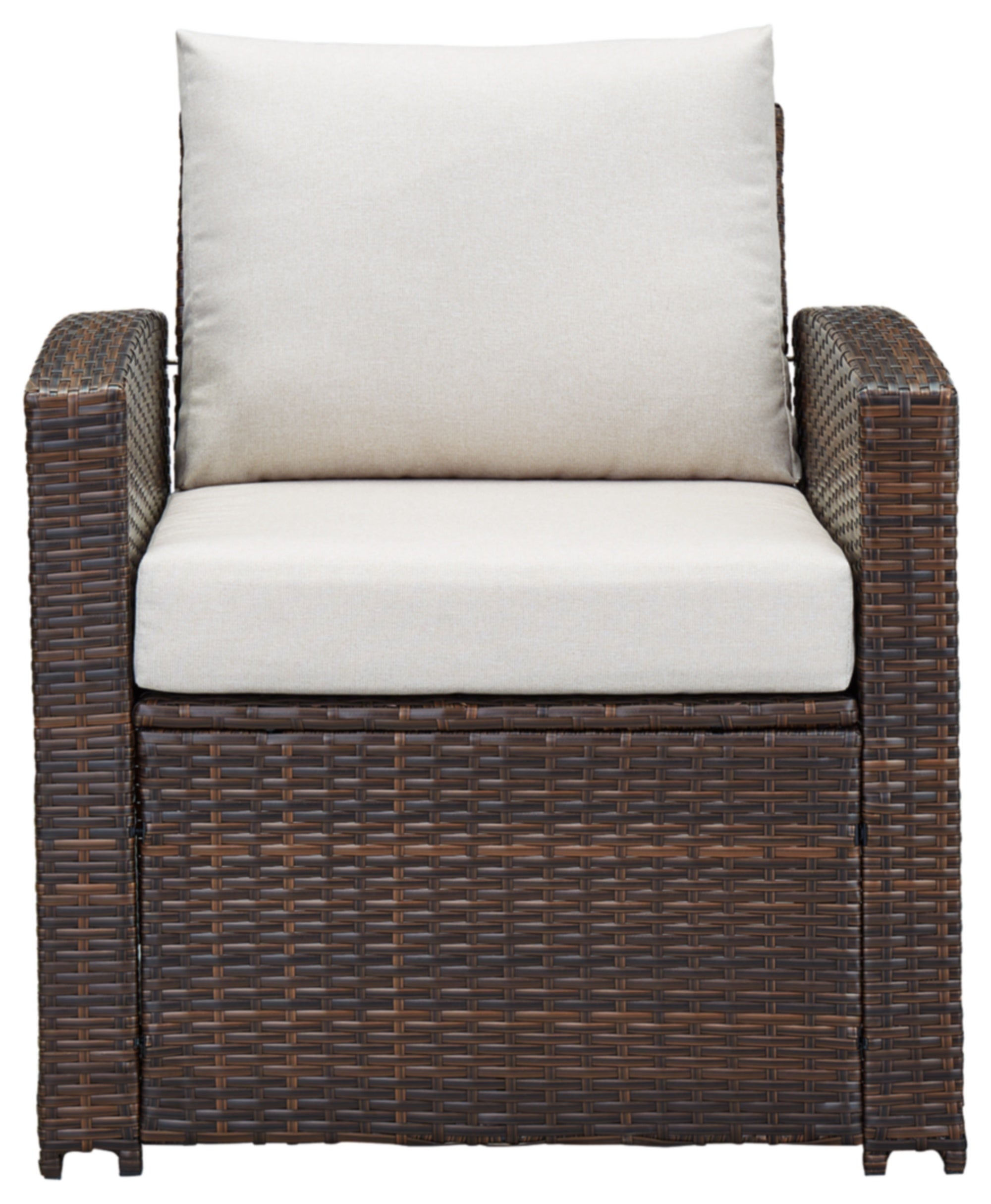 Complete your outdoor oasis with the East Brook set of two lounge chairs with cushions. A dark brown resin that’s wicker woven on a heavy-duty steel frame keeps your patio perfectly stylish, with the added bonus of durability. The neutral-colored cushions blend seamlessly with your other outdoor decor and are made with our high-performance Nuvella® fabric that’s fade-resistant, stain-resistant and a breeze to clean.