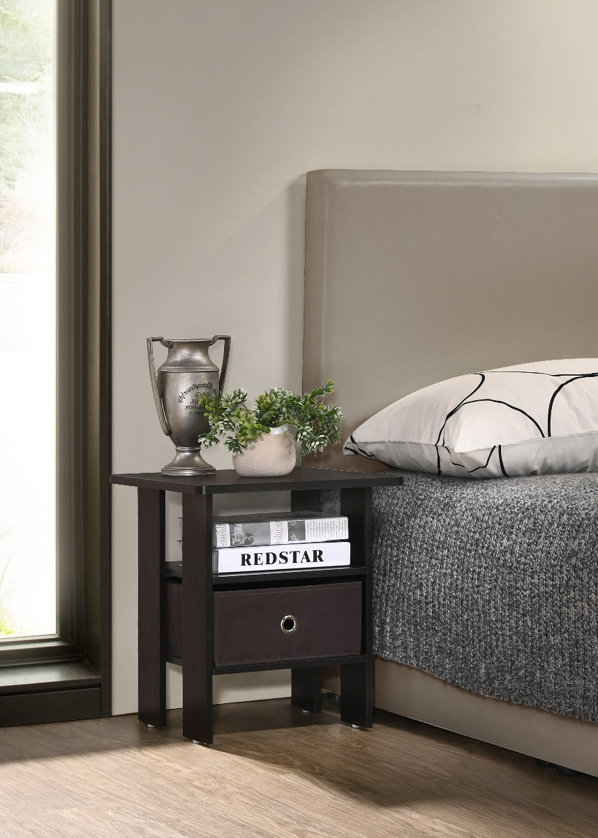 This little transitional table is perfect when you need storage in smaller spaces. The table features an open shelf for storage or display. A fabric drawer basket that provides easy storage access that can also be removed and used to store your items alone. Great function that can also be used as a small bedside table. A great espresso finish will work in many settings.