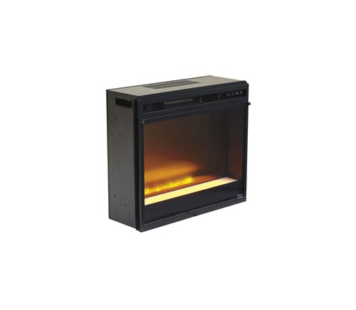 Add a touch of warmth and create beautiful ambiance for your TV viewing pleasure with this wide fireplace insert. Available as a "pop in" addition on select TV stands and entertainment centers, this insert can easily replace a lower shelf in your entertainment center. With no hassle, maintenance or cleanup, delight in all the unique features of this fireplace via remote control. With the touch of a button, adjust flame brightness, temperature or set the 12-hour timer for long-lasting enjoyment. The realistic flame effect starts with the color change flame bed that includes faux glass and natural rock inserts.