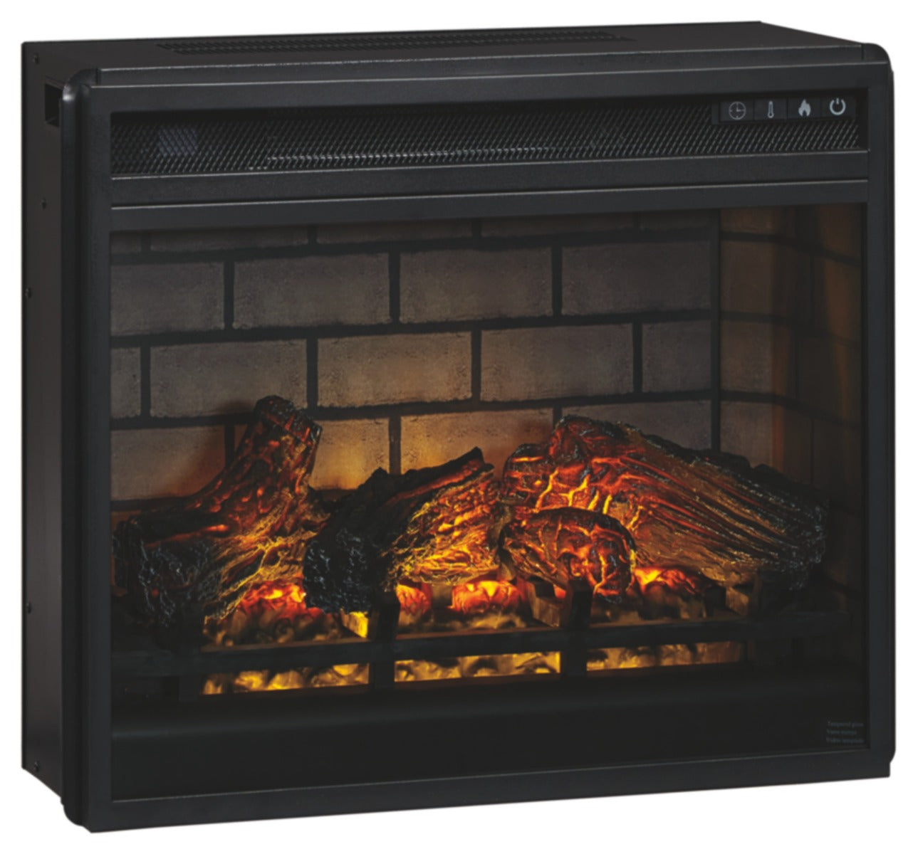 Enjoy the cozy feel of a cracklin’ fireplace without the hassle, maintenance or cleanup. Available as an addition on select TV stands and entertainment centers, this fireplace insert with faux firebrick surround operates with or without infrared heat and includes a multi flame feature, 7-level temperature setting, five brightness levels and LED glowing embers effect.