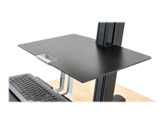 Upgrade your WorkFit-S workstation with a work surface and handle. Keep a tablet computer, phone, cup of java or task-related items where they can be quickly accessed. Includes a handle for ease of moving the Work. Fit-S from a sitting to a standing position.