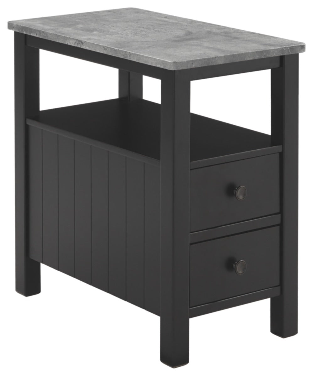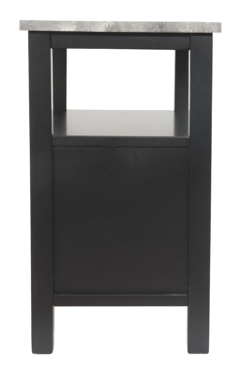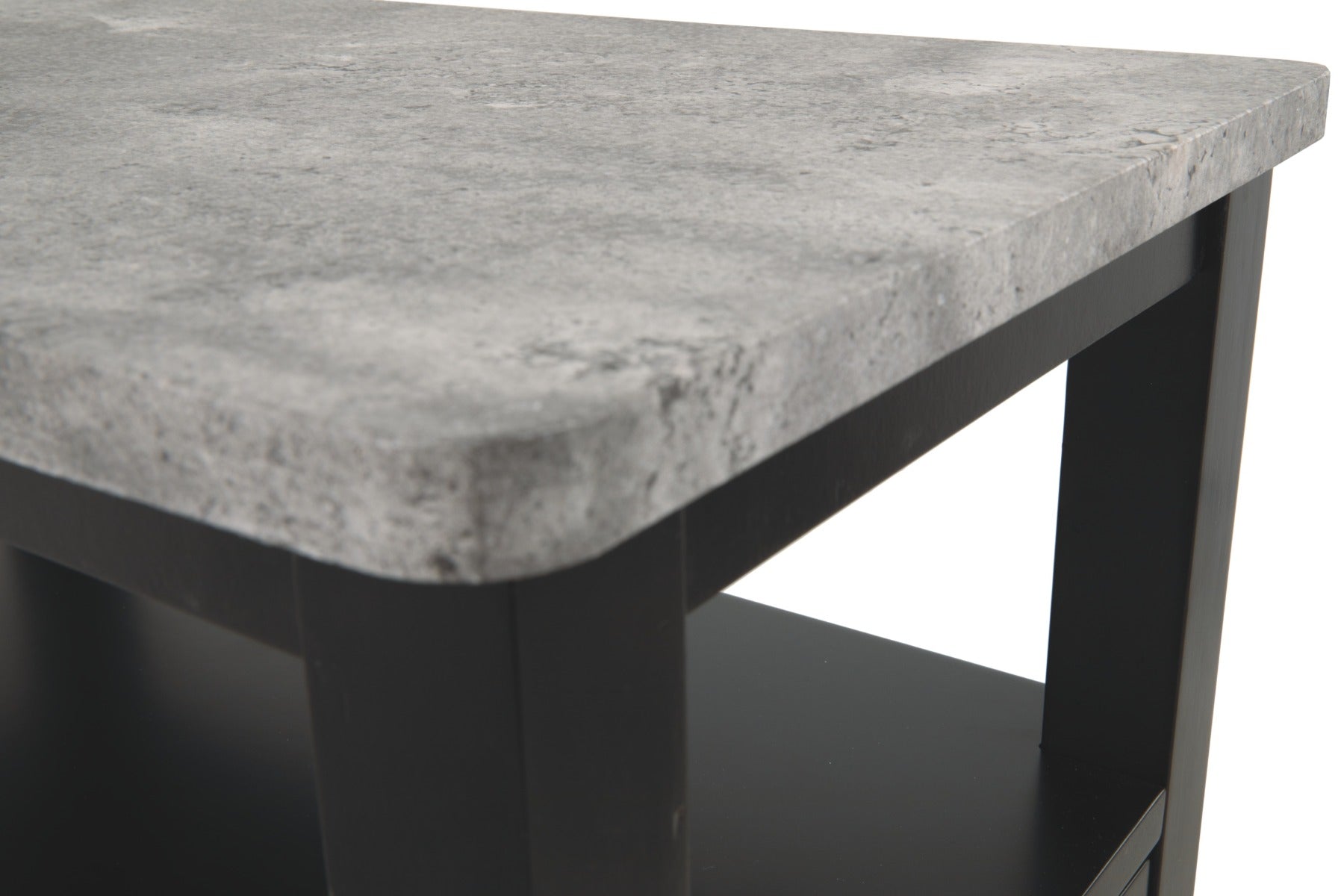 Pairing a faux marble top in gray with a brilliant black base, this lift top table makes a simply striking statement. A generously sized drawer adds to the form and functionality. Optional casters provide welcome flexibility.