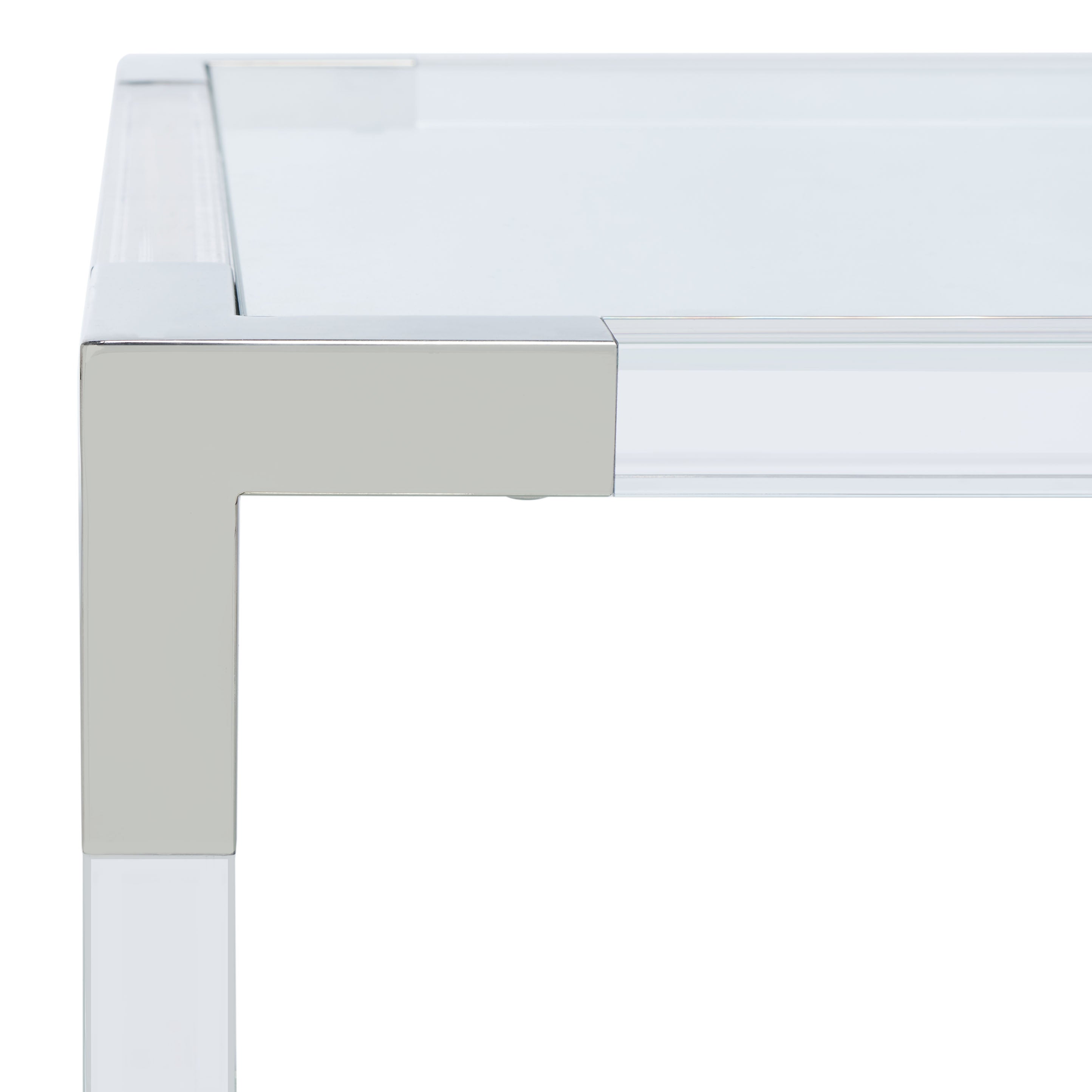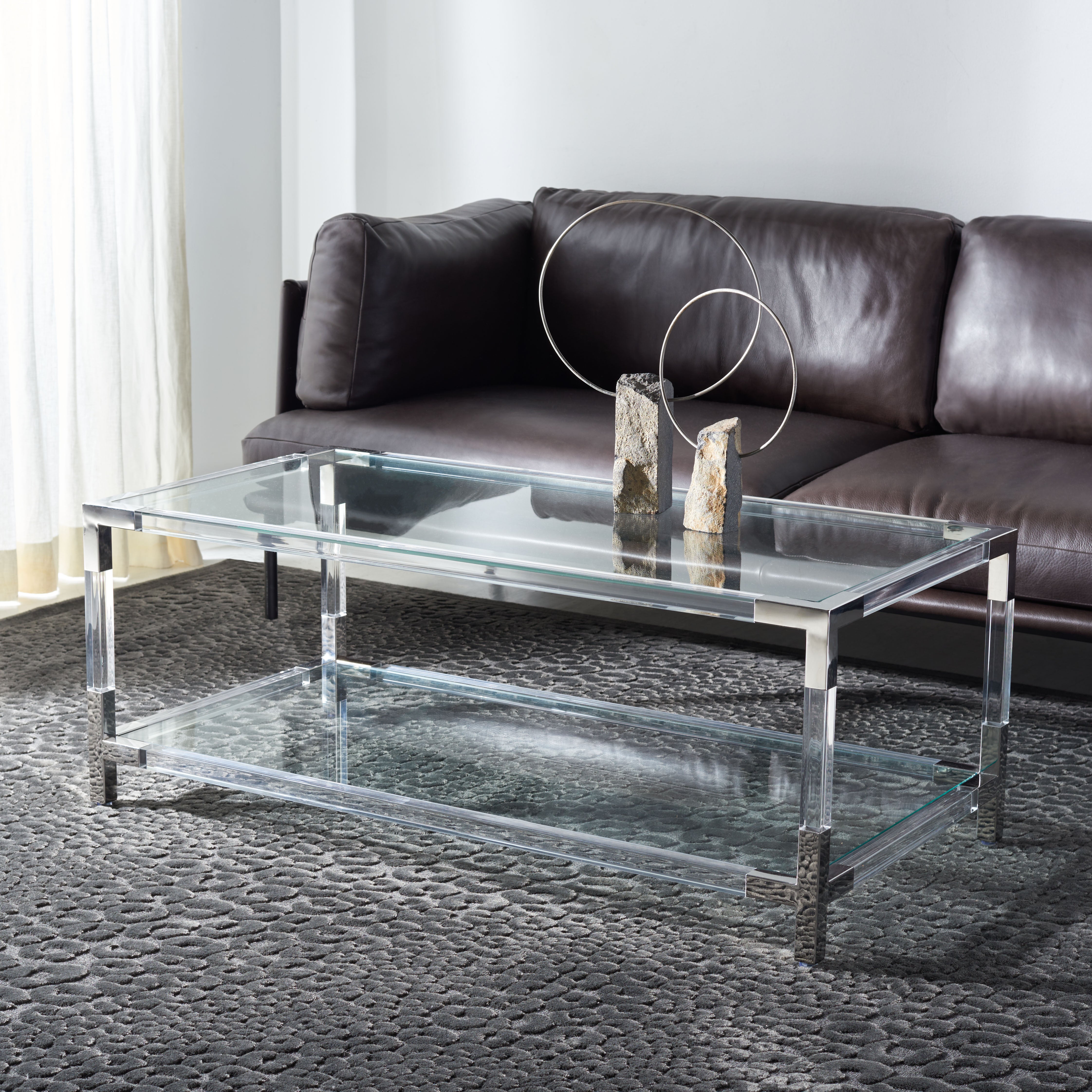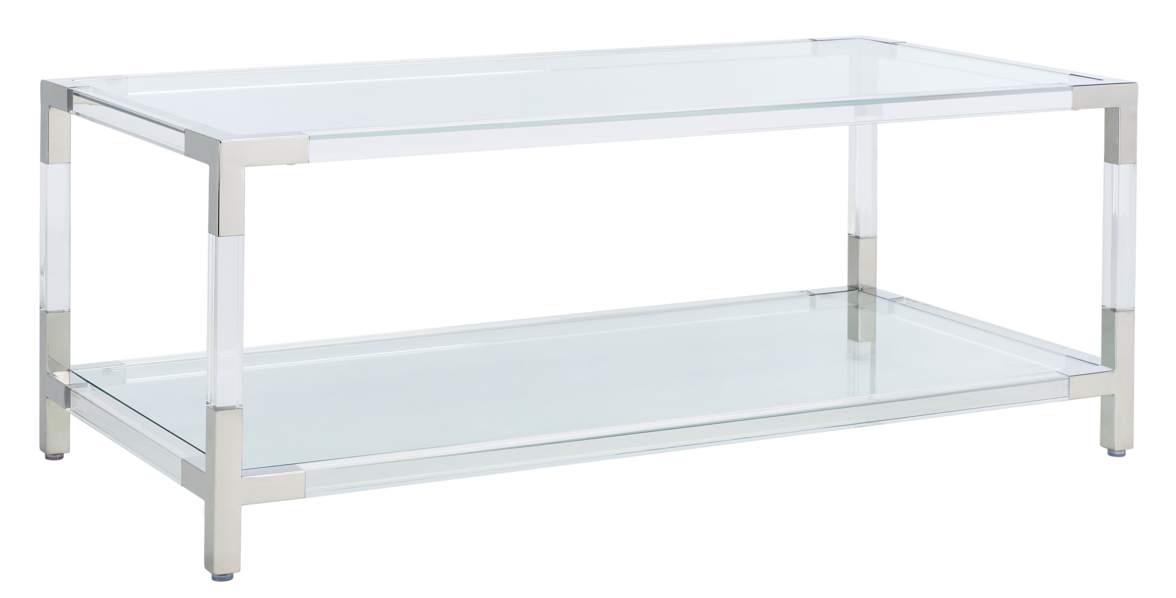 This Flora Coffee Table is a glamorous addition to any interior in need of storage and style. With three times the charm, Flora’s acrylic and glass shelves are anchored by sophisticated silver details that awaken the aesthetic of any décor with Old Hollywood decadence.