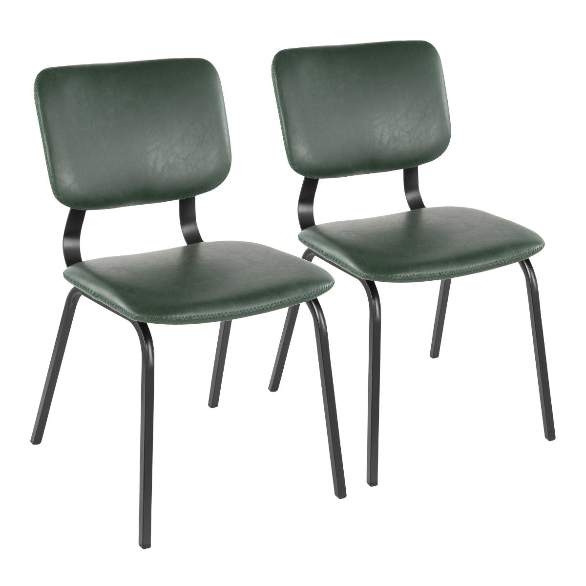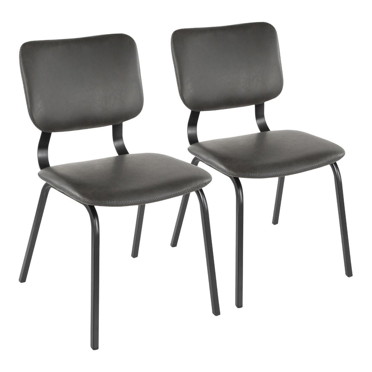 A contemporary take on a classic design, the Foundry Chair by LumiSource features a curved backrest, comfortable seat, and black metal stationary legs. Upholstered in a luxurious faux leather with contrasting stitching, the Foundry Chair is available in a variety of color options, sure to fit your space.