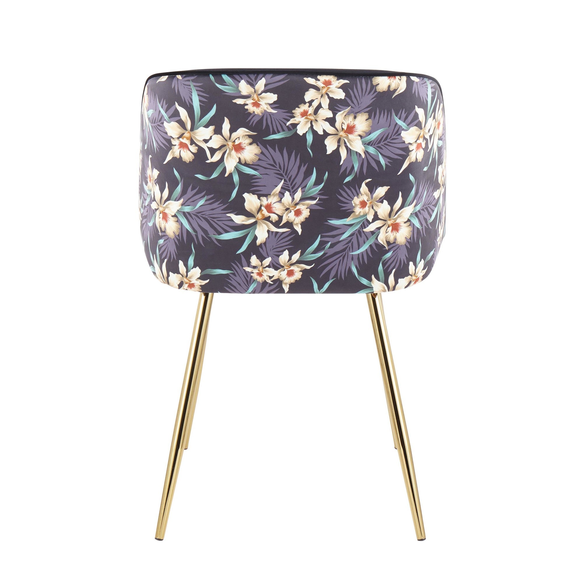 Surround your dining table with the beauty of the Fran Dining Chair. Featuring a sophisticated velvet upholstery that will tie in perfectly with your contemporary decor, the ultra comfortable padded bucket seat is complemented by tapered legs and a velvet floral pattern on the backrest. Available in a variety of color combinations, choose the color that ties in with your decor!