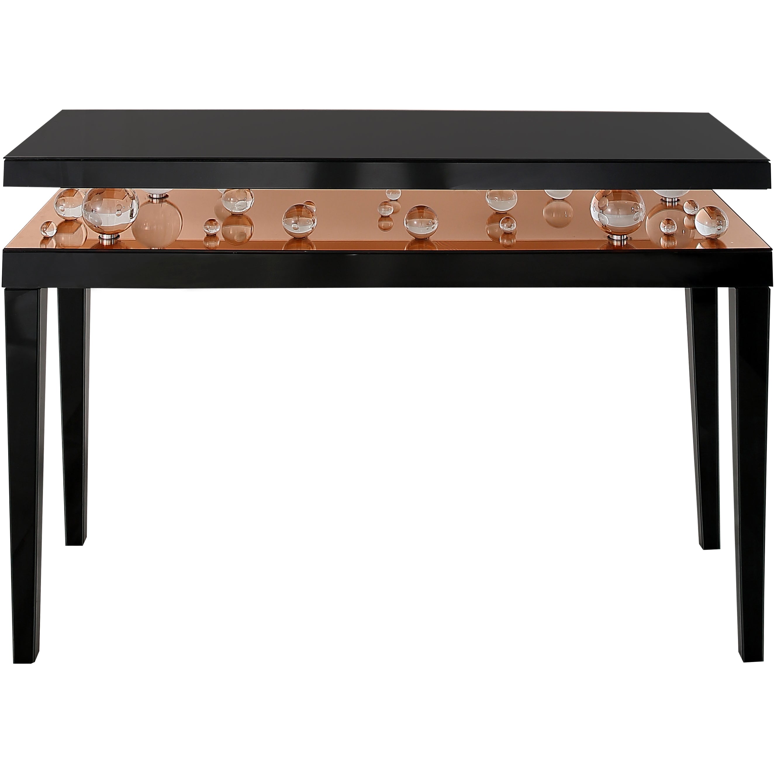 The Gelenau Console Table is sure to be that show-stopping piece in your home, worthy of admiration and praise. In rich ebony and rose gold tones, The Gelenau Console Table floats upon celestial orbs to offer high-end design at its finest. Match the console table with our complimentary Gelenau Wall Mirror and create a magazine-worthy space in an instant.