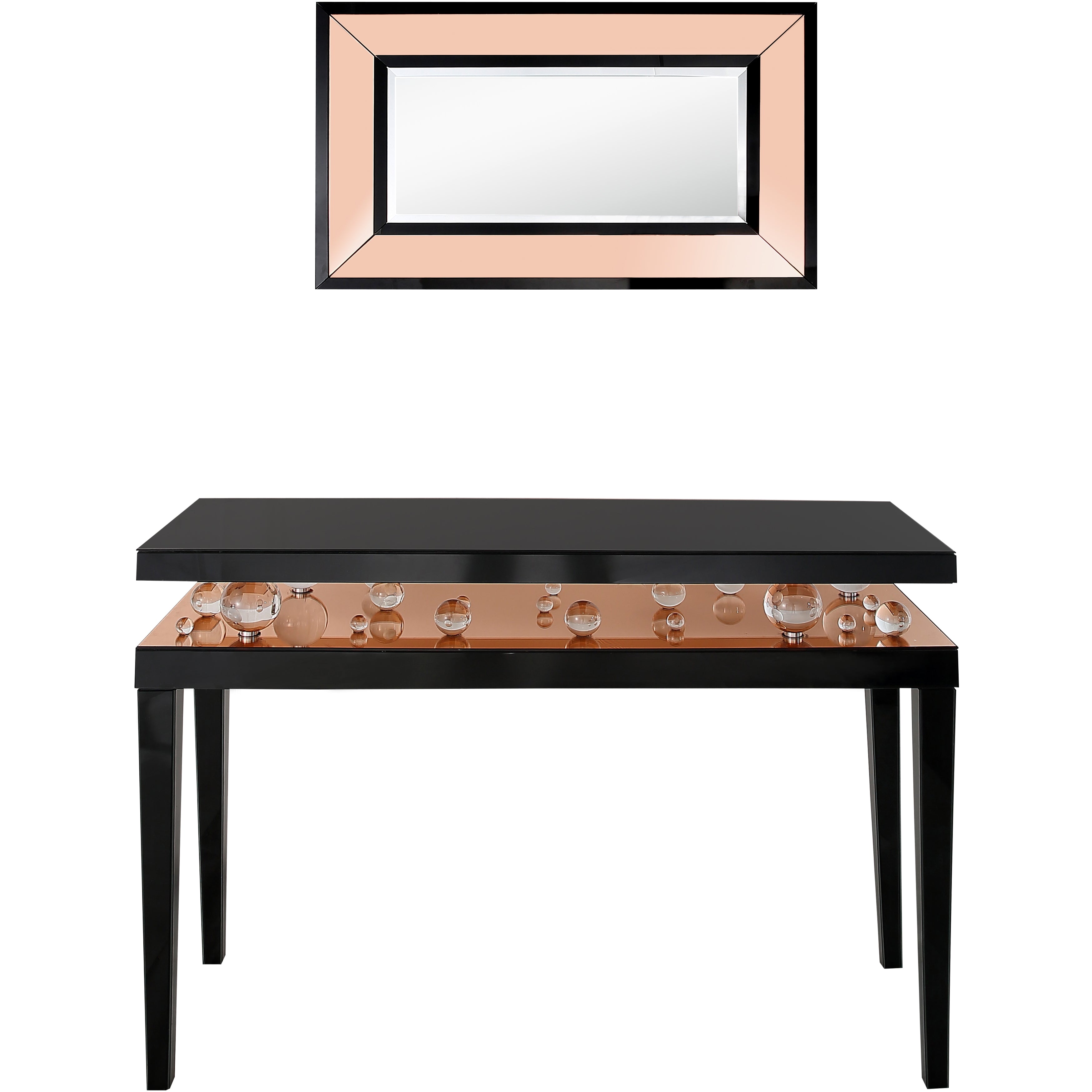 The Gelenau Wall Mirror combines the richness of ebony and the rarity of rose gold to create a stunning element of reflection. At approximately 42 inches in length, the Gelenau Wall Mirror is for those who appreciate the unexpected and aren't afraid to be bold. Do you dare? The Gelenau Console Table is sure to be that show-stopping piece in your home, worthy of admiration and praise. In rich ebony and rose gold tones, The Gelenau Console Table floats upon celestial orbs to offer high-end design at its finest. Match the console table with our complimentary Gelenau Wall Mirror and create a magazine-worthy space in an instant.