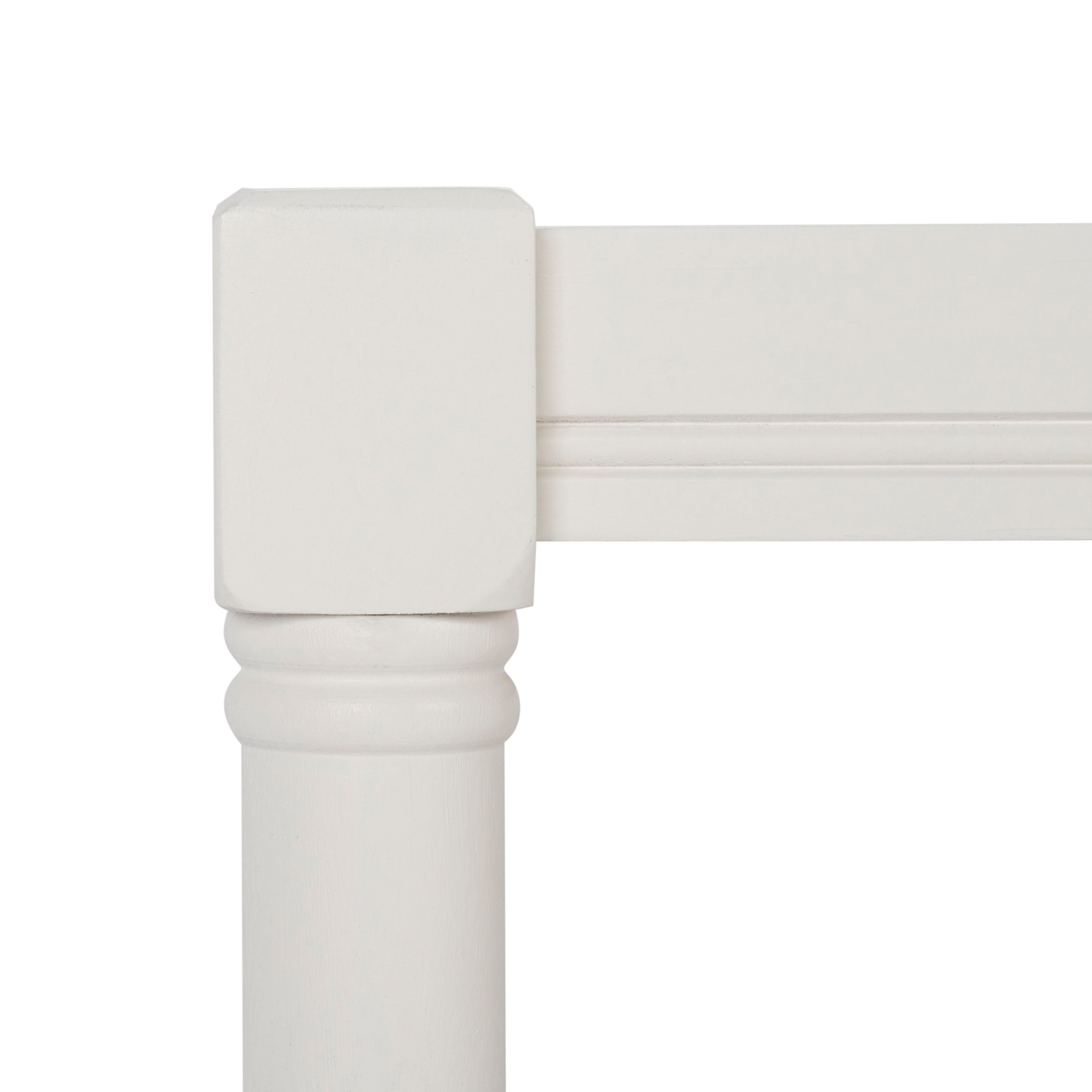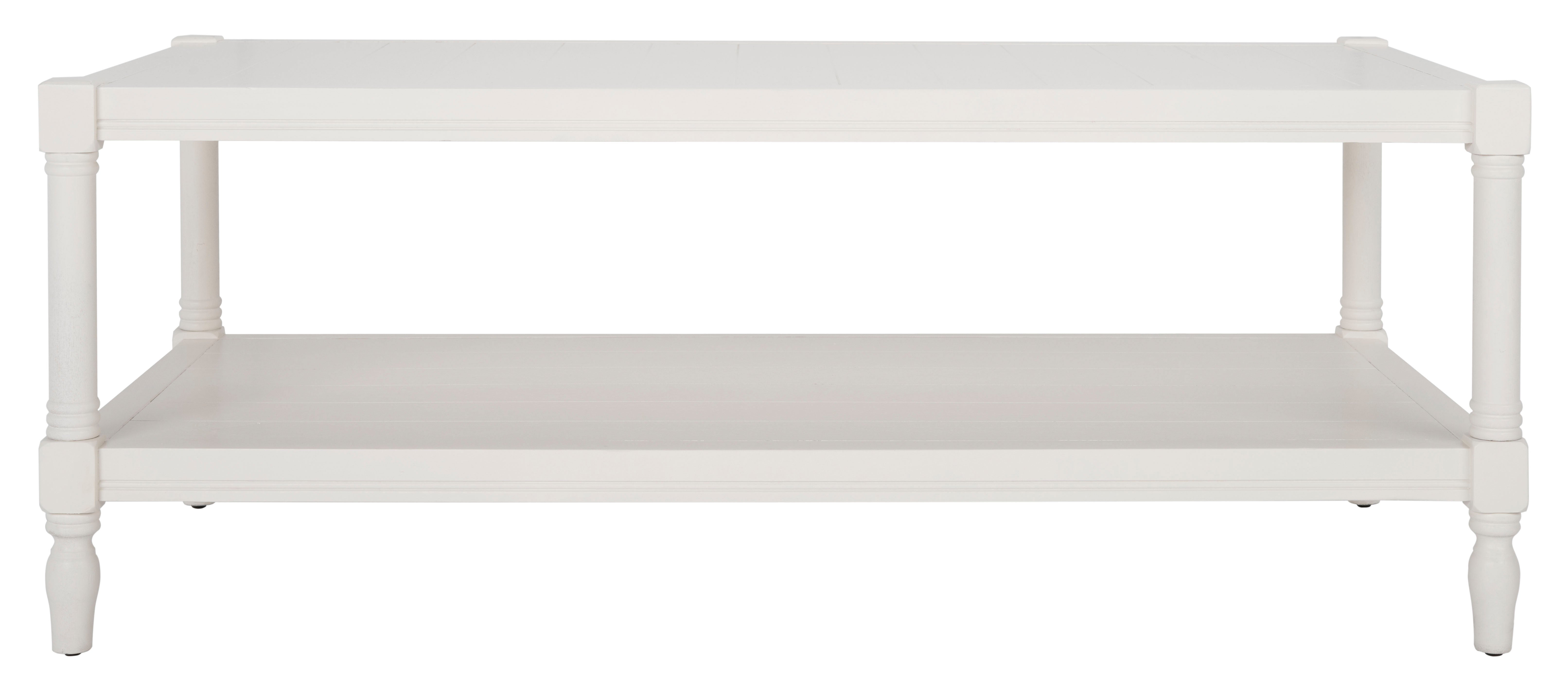 Evoke the charm of coastal cottage style with the Inga Coffee Table in a sleek white painted finish. An inviting combination of form and function, this piece is crafted of pine of artfully turned spindle legs with a slatted top and lower shelf for storage.