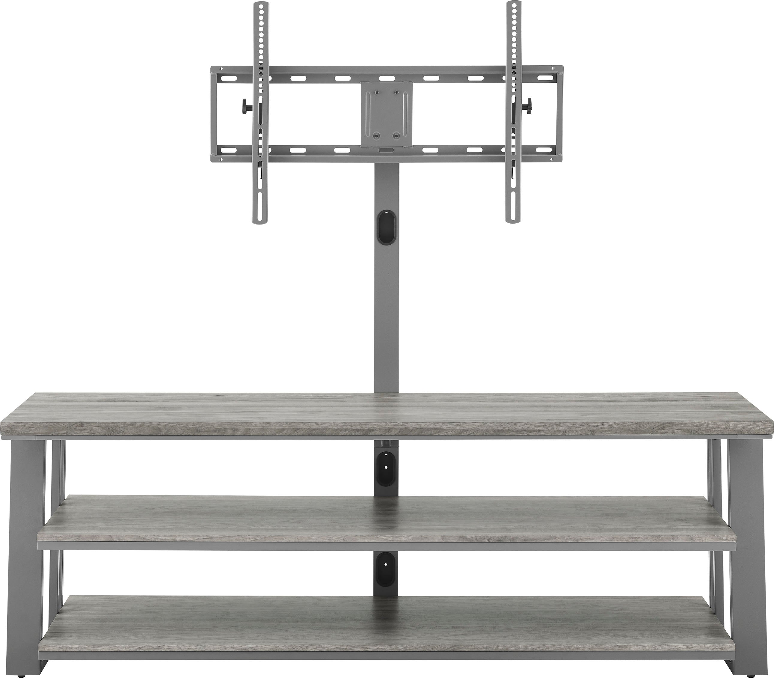 Rethink the way you organize your home entertainment center. With the Insignia NS-HFTVS3N175 TV Stand for Most Flat-Panel TVs Up to 75" you have space for all your gaming consoles speakers accessories and more. Supporting up to 100 lbs. this TV stand can hold TVs up to 75" providing enough support for a larger TV. It has a built-in TV mount with a 3-in-1 display system that lets you find the best viewing angle with tilt and swivel capabilities. The tasteful neutral gray woodgrain texture and three open shelves give any living room bedroom or dorm room a modern look. VESA compliant the TV mount supports multiple patterns ensuring your TV will be secure on the stand. This easy-to-assemble Insignia TV stand also comes with all the necessary hardware and instructions and is ready to give any living space the extra touch it needs.