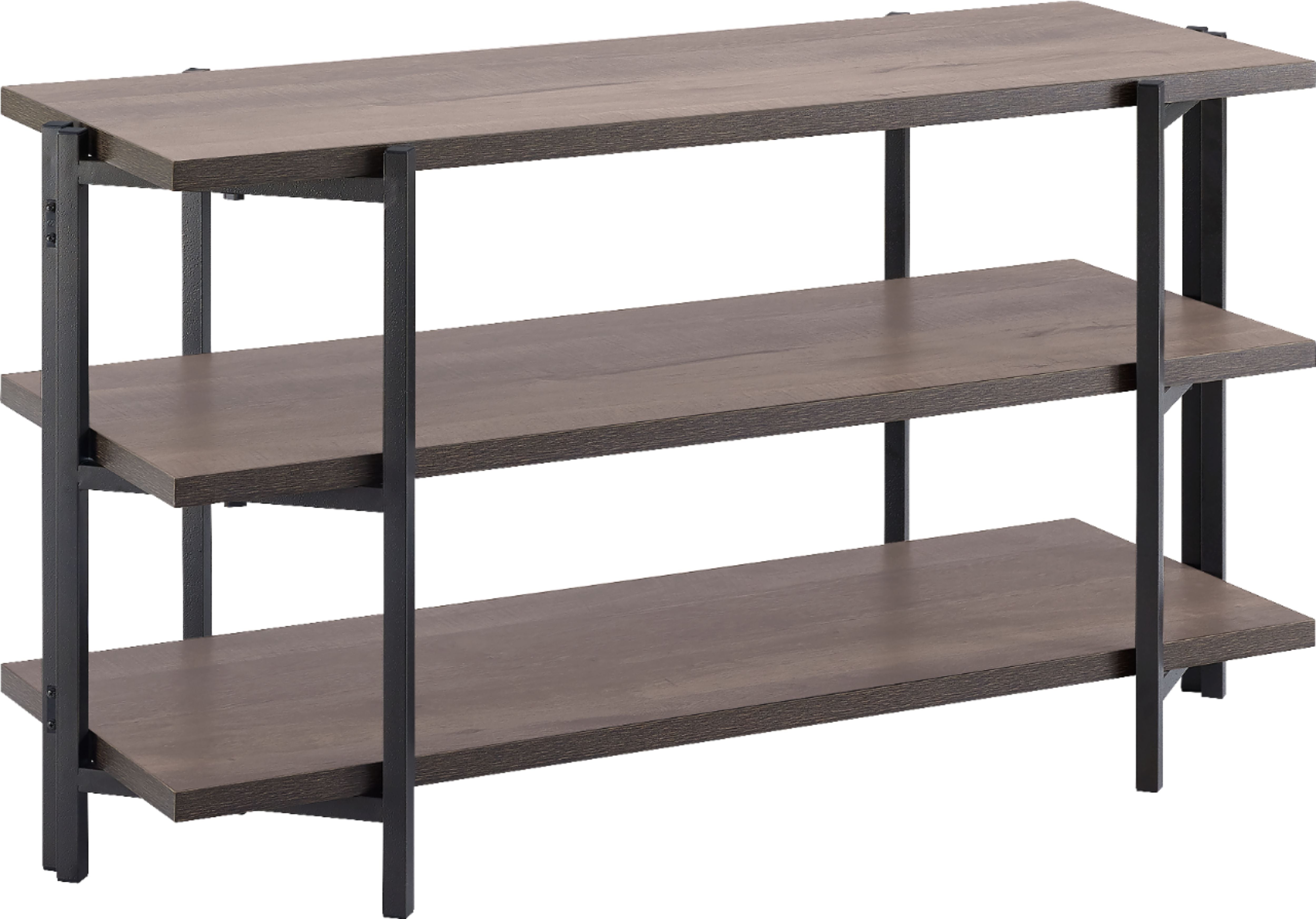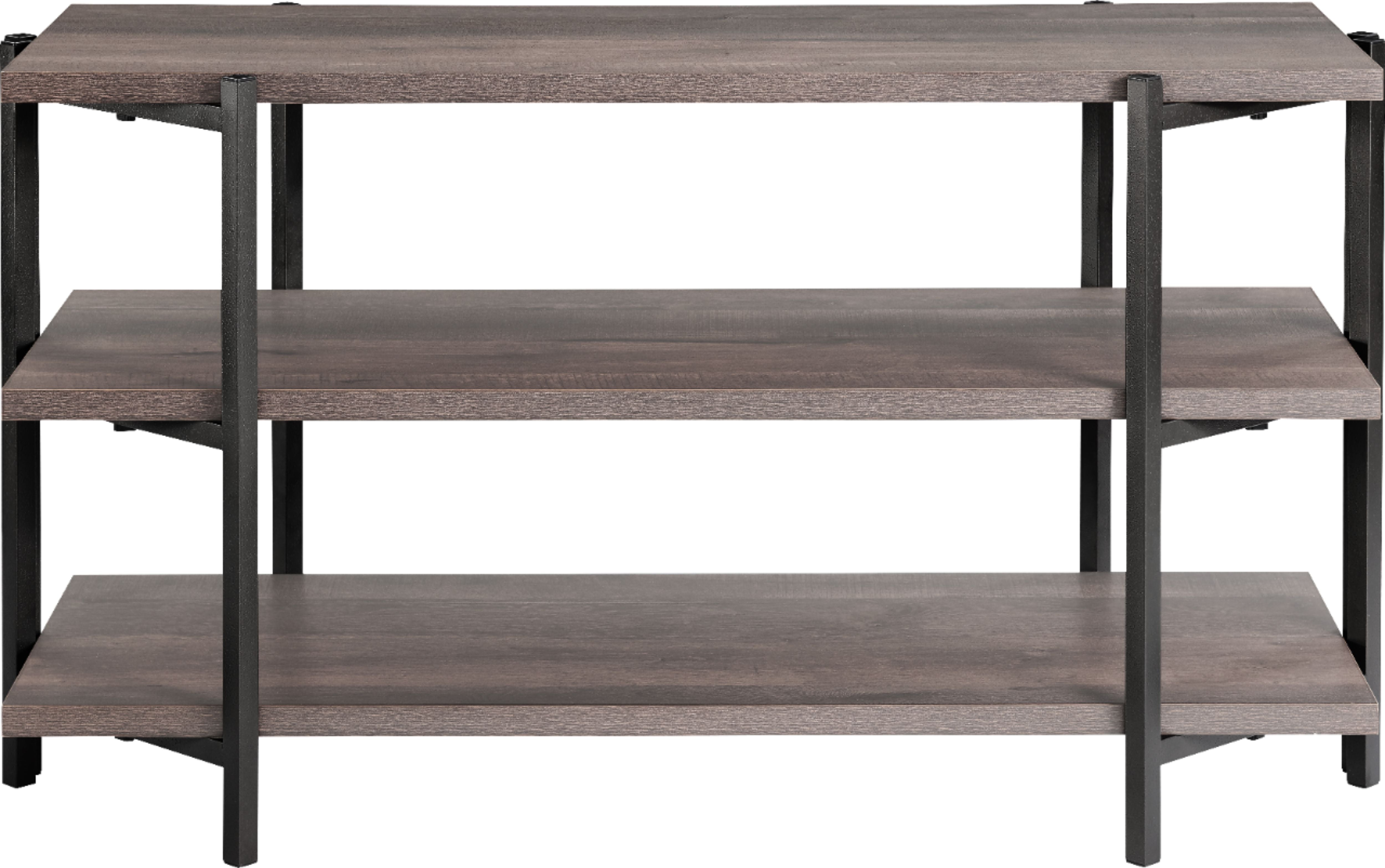 Organize your home theater with this 55-inch Insignia TV stand. The no-tool assembly simplifies setup, while the steel frame construction provides reliable support and durability. This Insignia 55-inch TV stand holds up to a 50-inch television and features two large shelves with dark wood finish for your components and accessories.