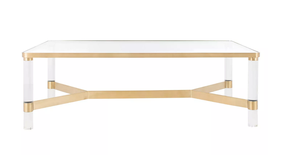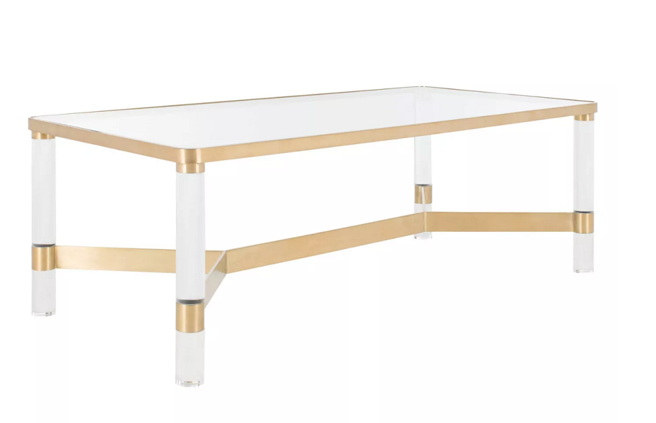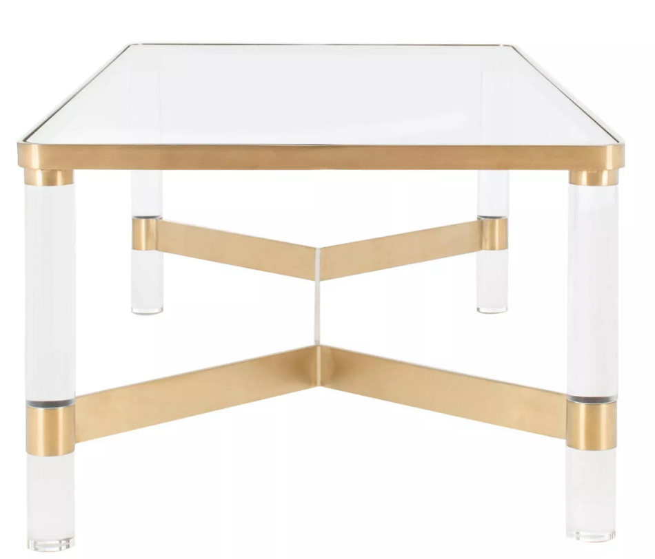 This is an oversized product and may take 7 to 20 business days to deliver.Inspired by vintage Italian modernist designs, the Isabelle Coffee Table brings cosmopolitan style to the table. The warmth of bronze brass details balance the cool ambience delivered by sleek acrylic and glass. Created for those with the collector’s eye.