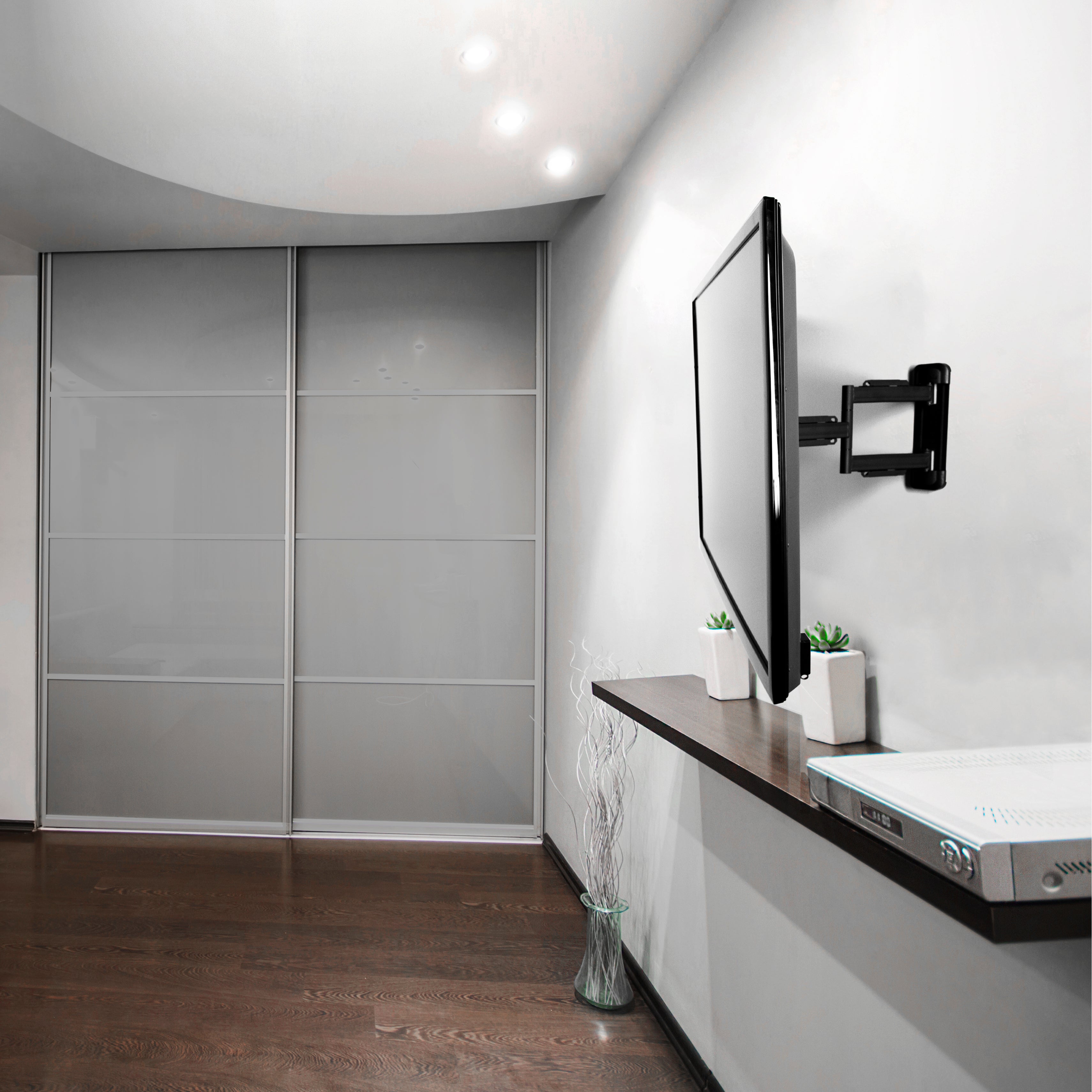The PS350 provides an amazing range of motion, offering 22-inches of extension yet sitting less than 2-inches from the wall when pushed in. Capable of accommodating TVs up to 60-inches and weighing 88 pounds, PS350 is simple to install and easy to use. The H-frame style TV plate fits a wide range of VESA sizes. The attractive solid steel construction includes a cable management system to hide your cables, and magnetic covers to hide the wall mount lag bolts.