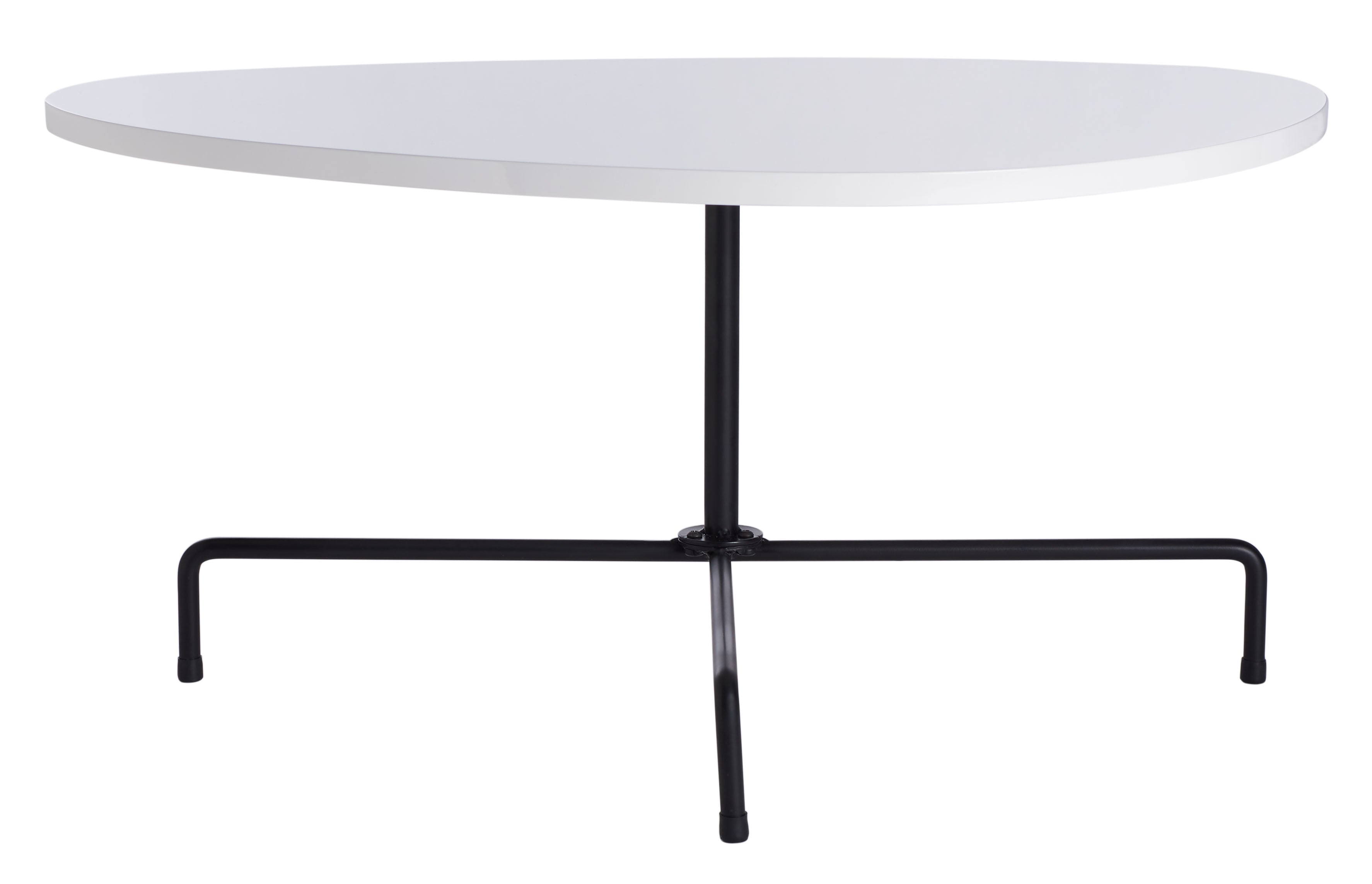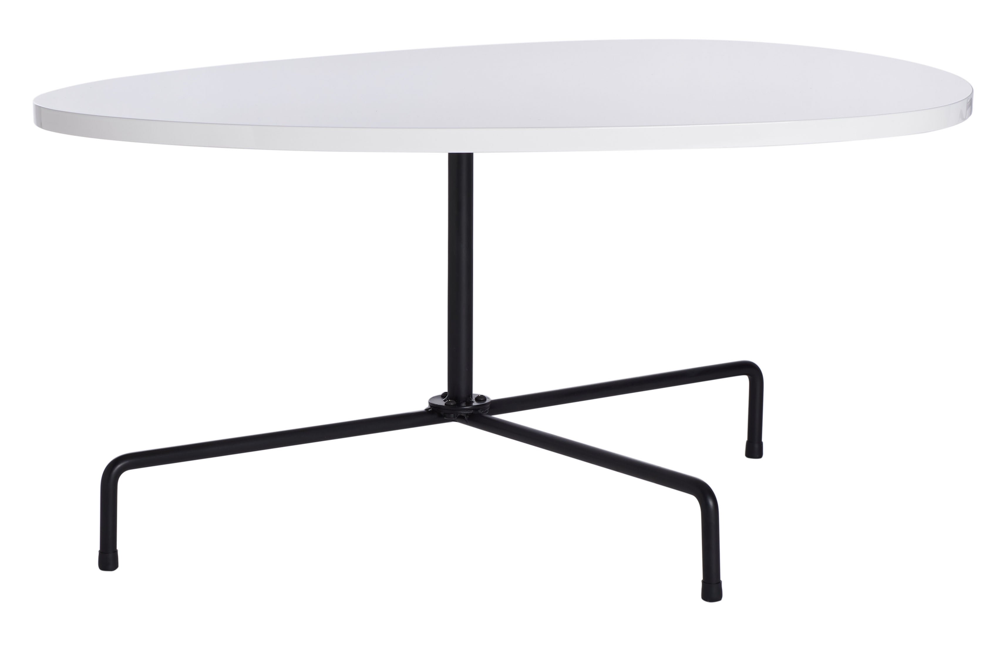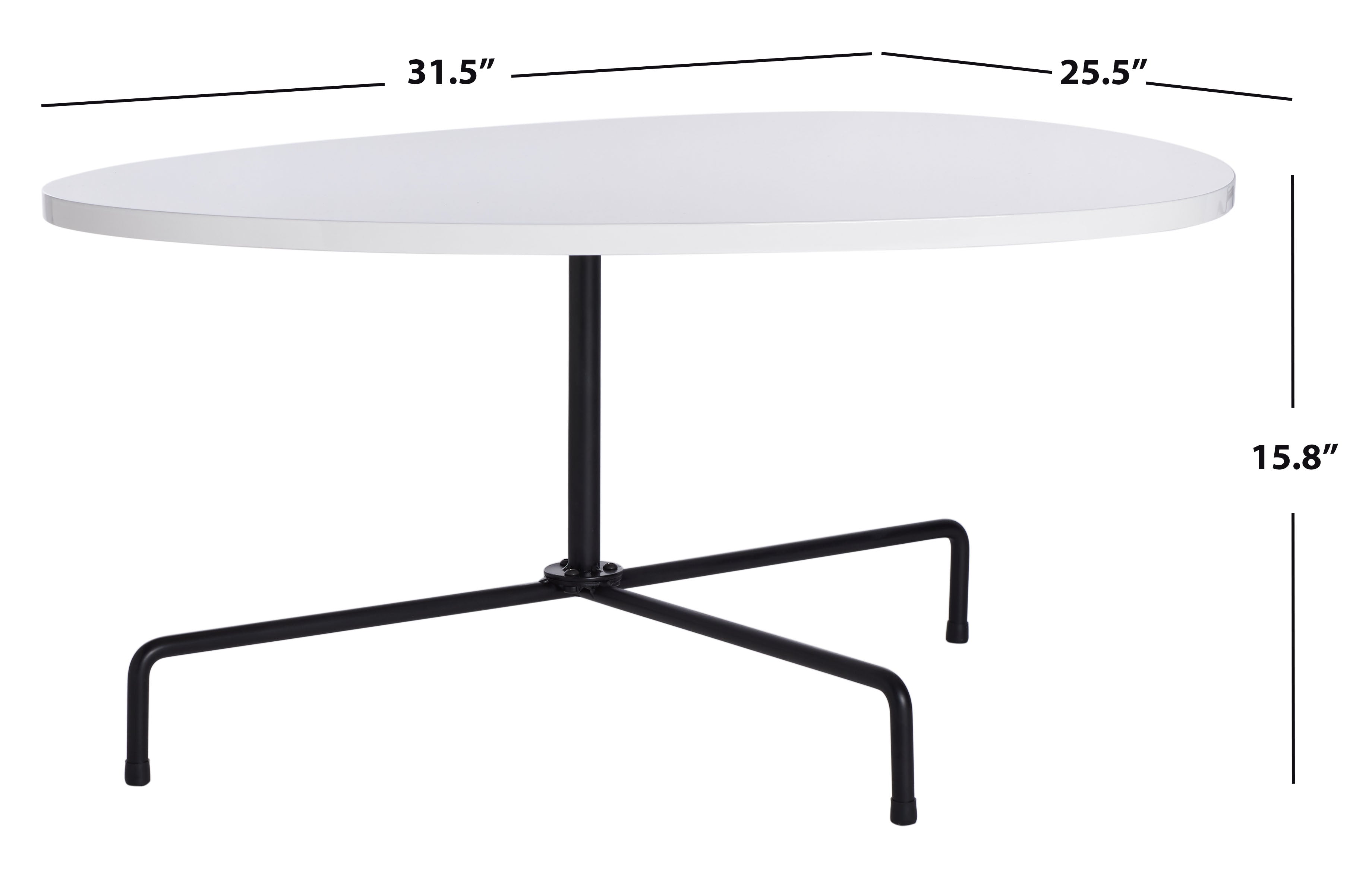 Reviving the timeless style of the Bauhaus art movement, the Lenna Tripod Coffee Table is the picture of fashion forward design. Black tripod legs perfectly balance a sculpted wooden top in a white lacquer finish for a retro mod look sure to make a splash, especially in rooms that could use a little panache.