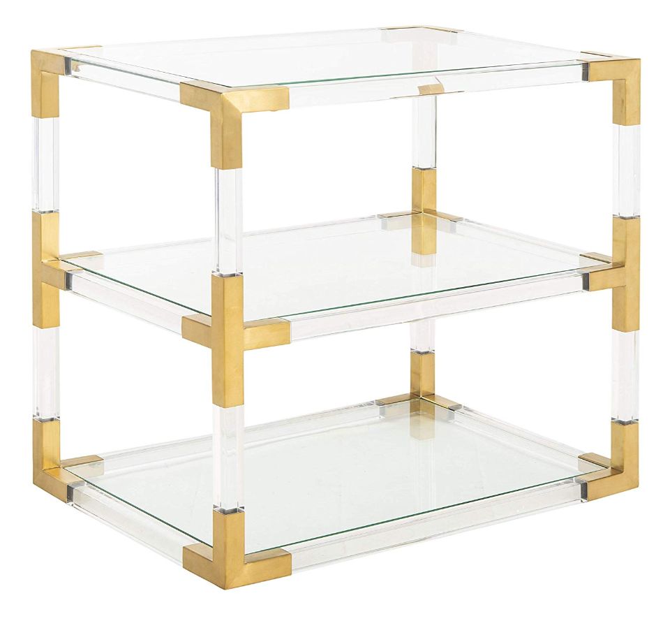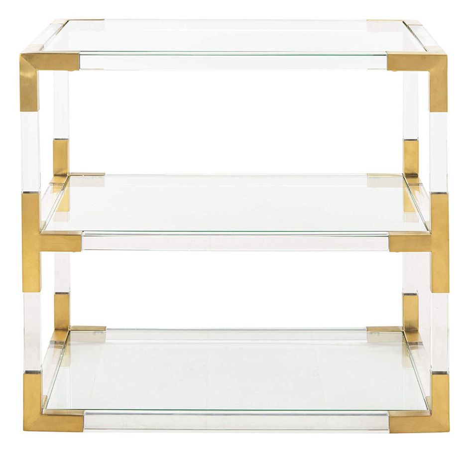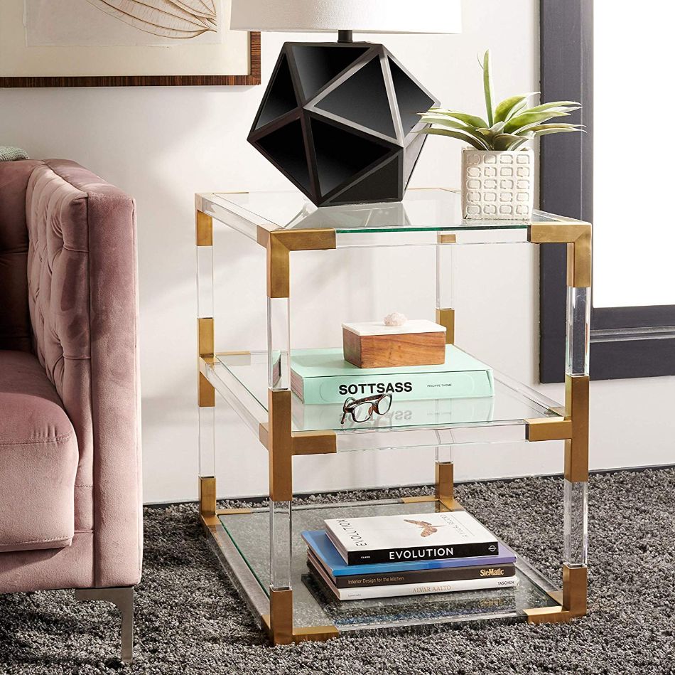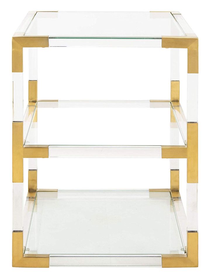 Modern muse. Inspired by the first reigning runway divas, the Angie End Table brings style, substance, and character to any room. Brass, glass and acrylic details conjure the grace, charm and decadence of those who embodied the lust for life.