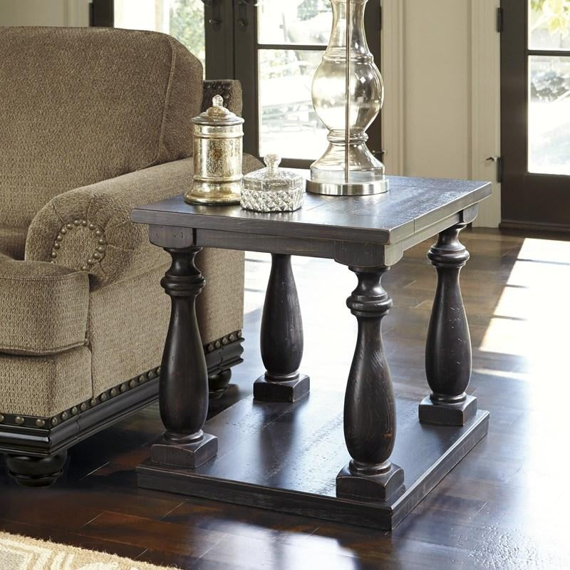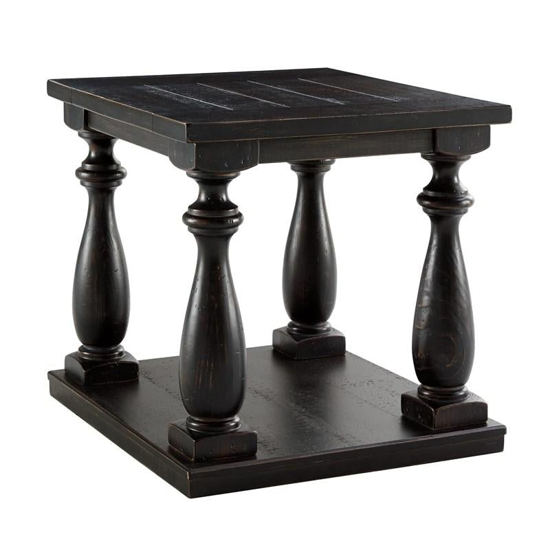 Mallacar end table's dramatic presence is exactly what an eclectically styled room needs. Solid wood planks and thick veneer merge seamlessly together in an oversized scale. Handsomely turned legs connect to a lower shelf.