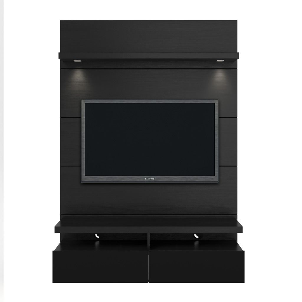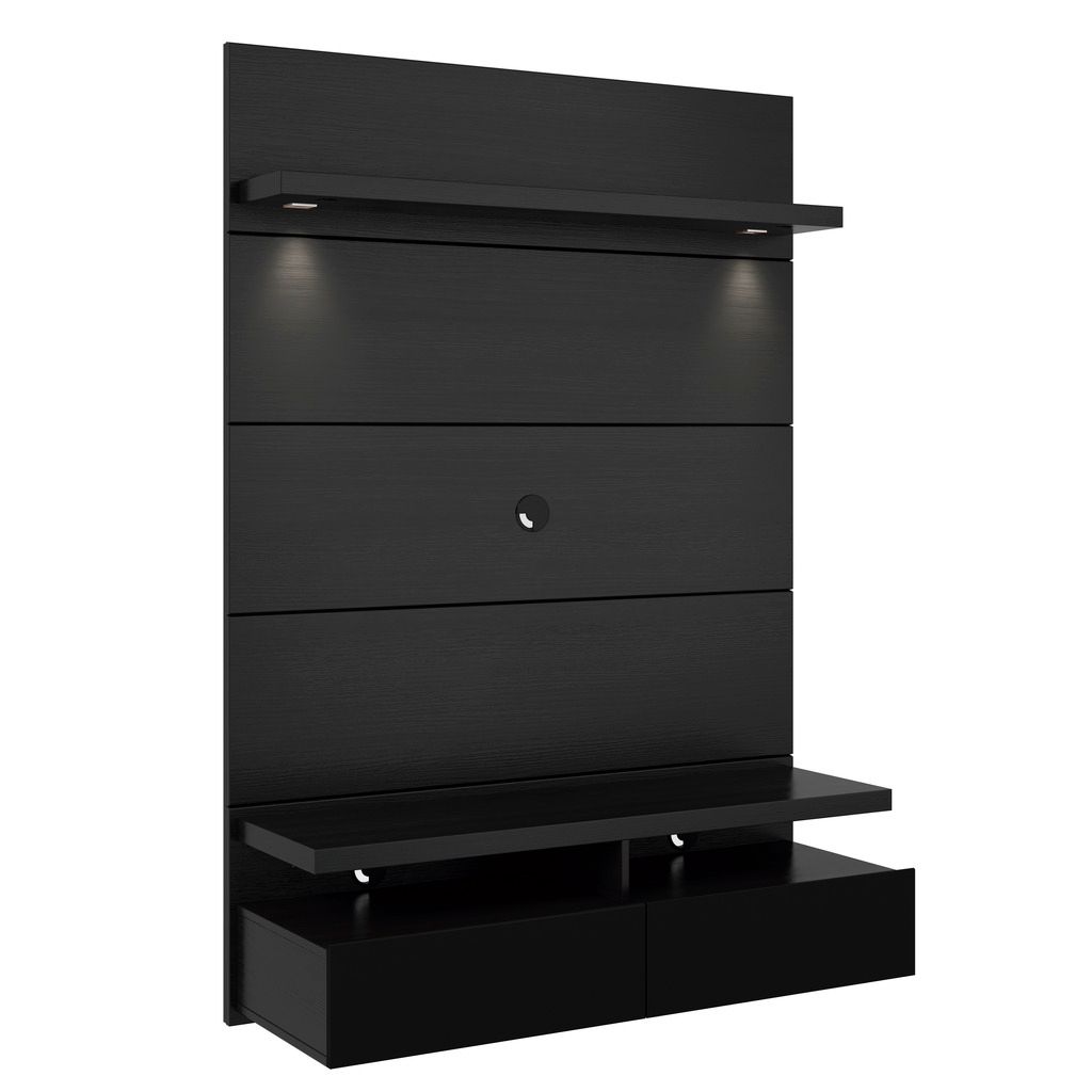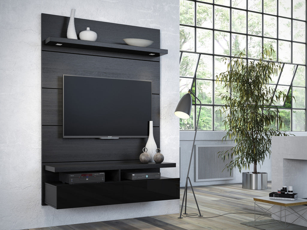 Manhattan Comfort Cabrini 1.2 Floating Wall Theater Entertainment Center in Black Gloss and Black Matte