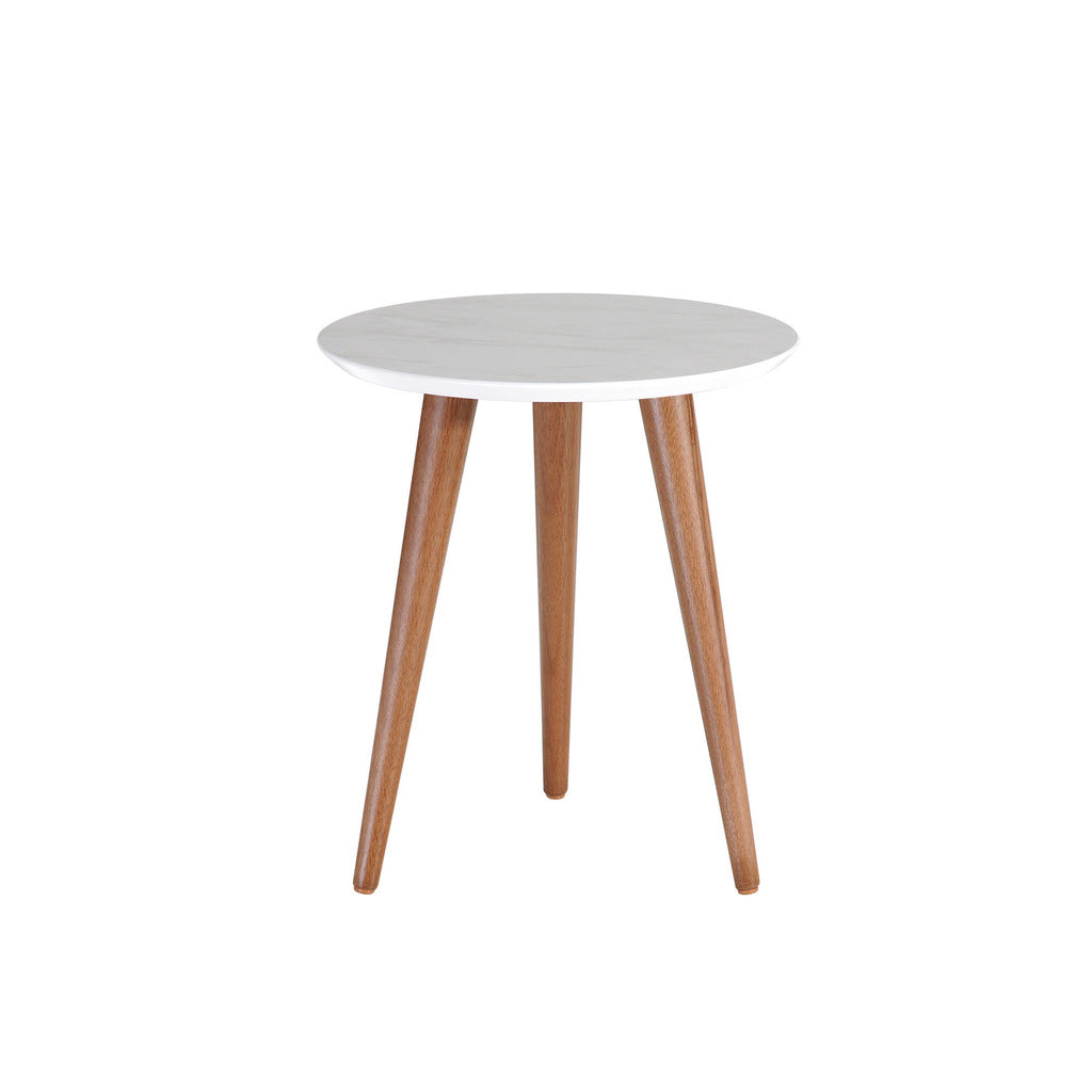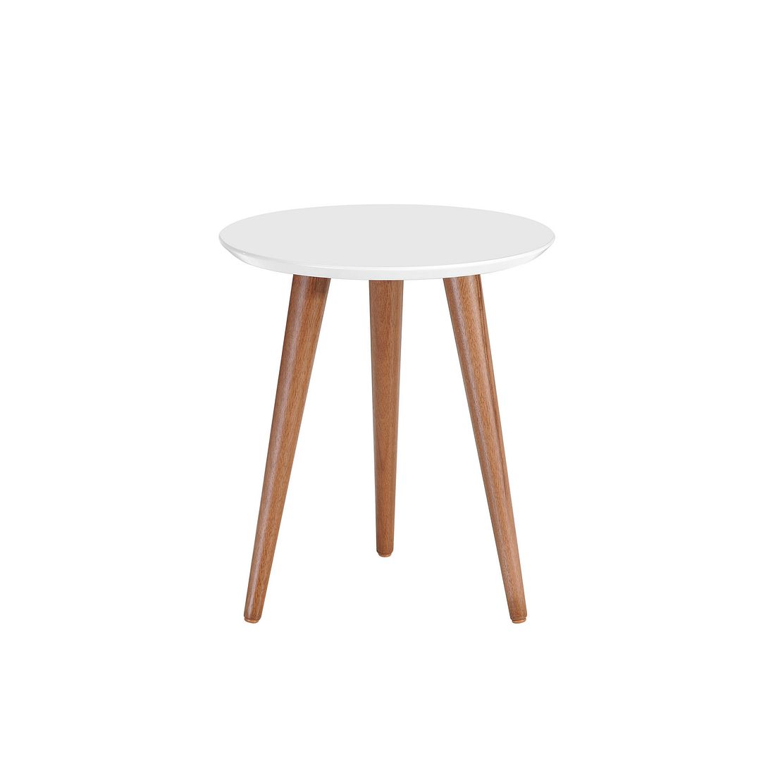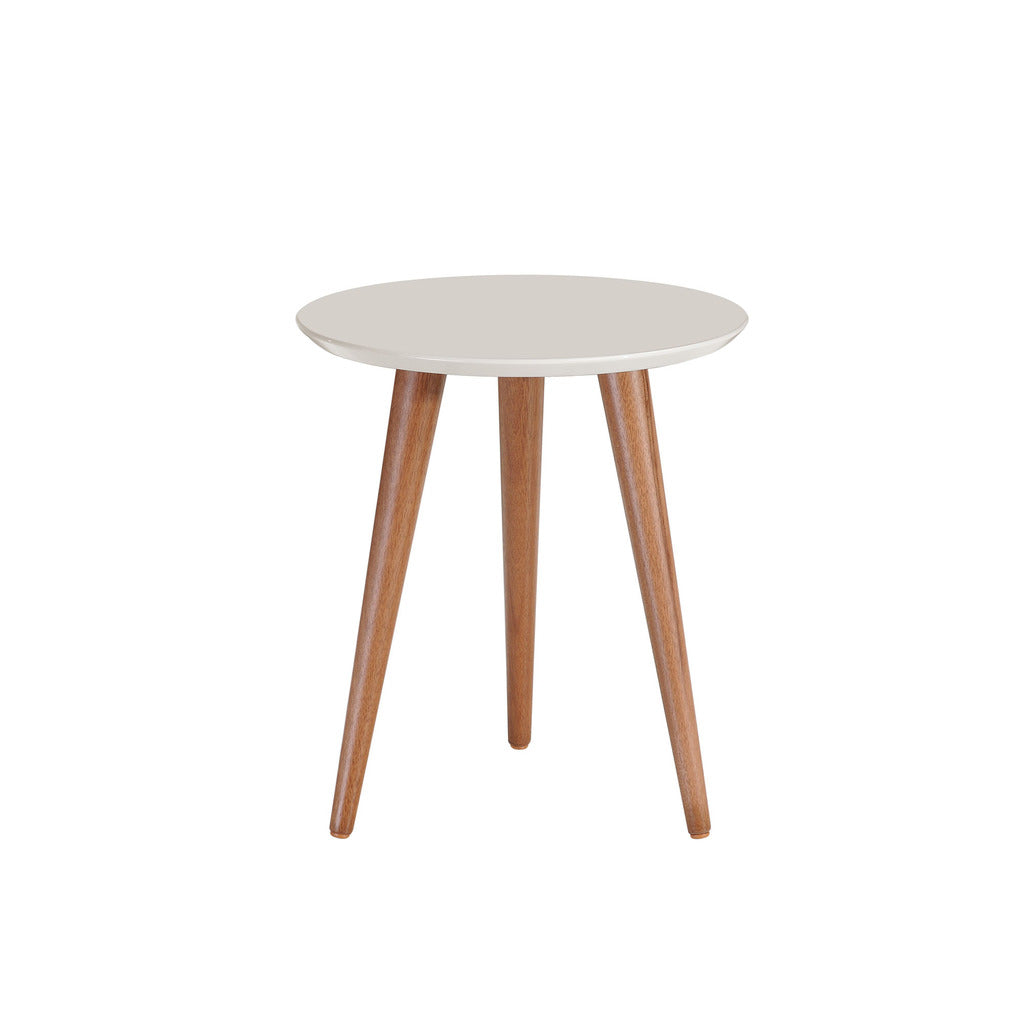 Round End and Accent Table for Living Room, Bedroom and Dining Room use. * Upon Assembly, Measures: 17.32 in. Length, 20.07 in. Height, 17.32 in. Depth. * Geometric 3 - Leg Base Design. * Solid Wood Splayed Legs for Fashion Statement Design and Product Durability. * Mix and Match: Get the Collection! Give your End Tables a Stacked Look with Manhattan Comfort Moore End Tables. * Made of High Quality MDF with Painted Smooth Gloss Finish. * Minor Feet Assembly Required. All Hardware Included. *