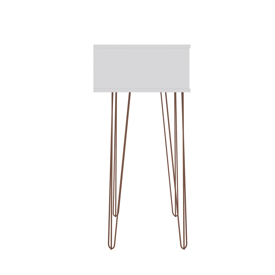 First impressions matter so make it a good one. The Rockefeller entryway console table greets you in style with mid-century modern flair, artful splayed metal legs, and functional storage space for extra bottles of wine, books, dishes, and favorite decorative accents. An inverted upper surface is perfect for a mail tray or framed family photos. Wherever you decide to place it in your home, this piece will stay with you, easily moving from space to space, all in good style.