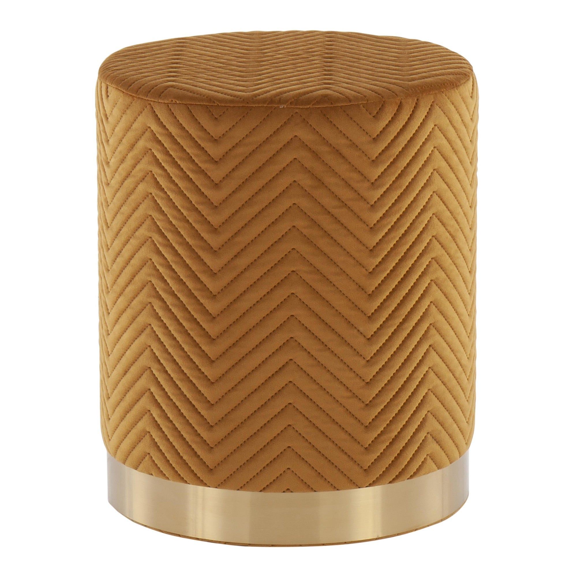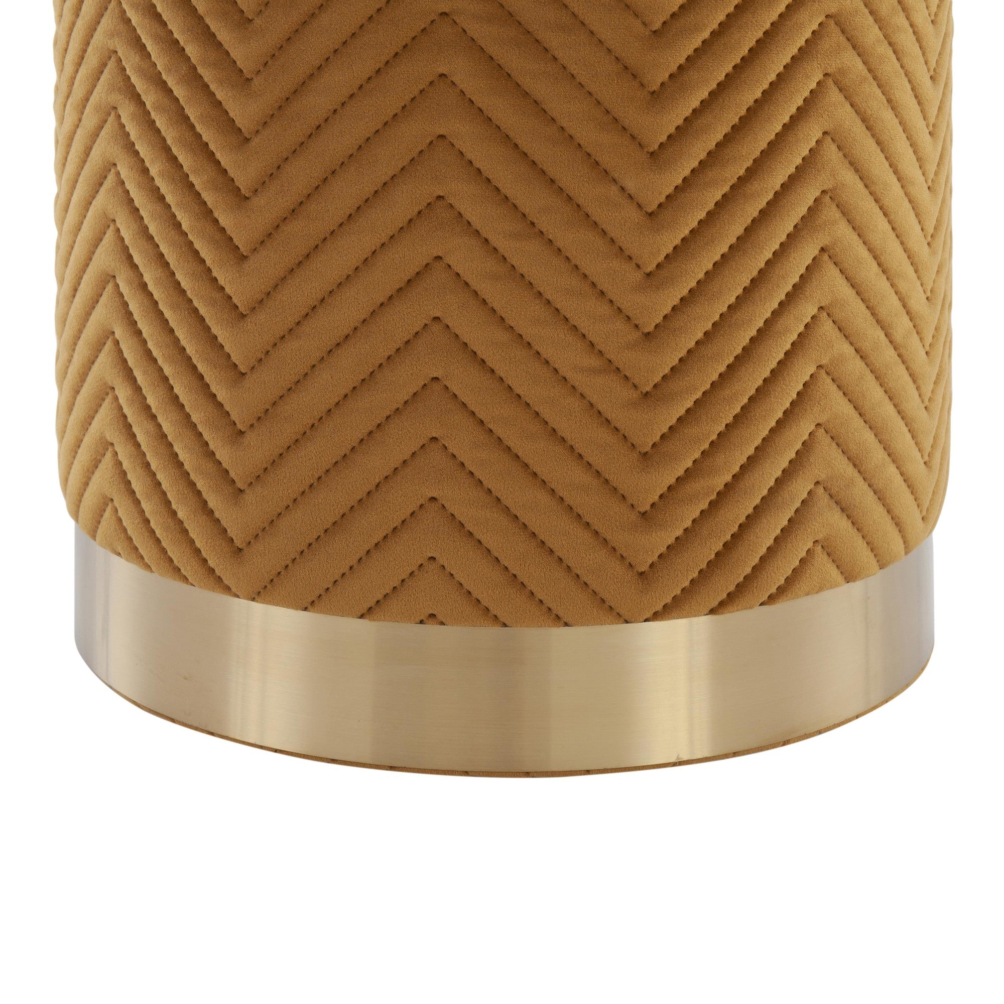 Bring a note of glamour to your home with the chic design of the Marla Chevron Ottoman by LumiSource. Featuring a soft cushioned velvet upholstery, stylish chevron pattern and a chic gold metal base. Available in a variety of upholstery colors, choose the one that fits your space the best.