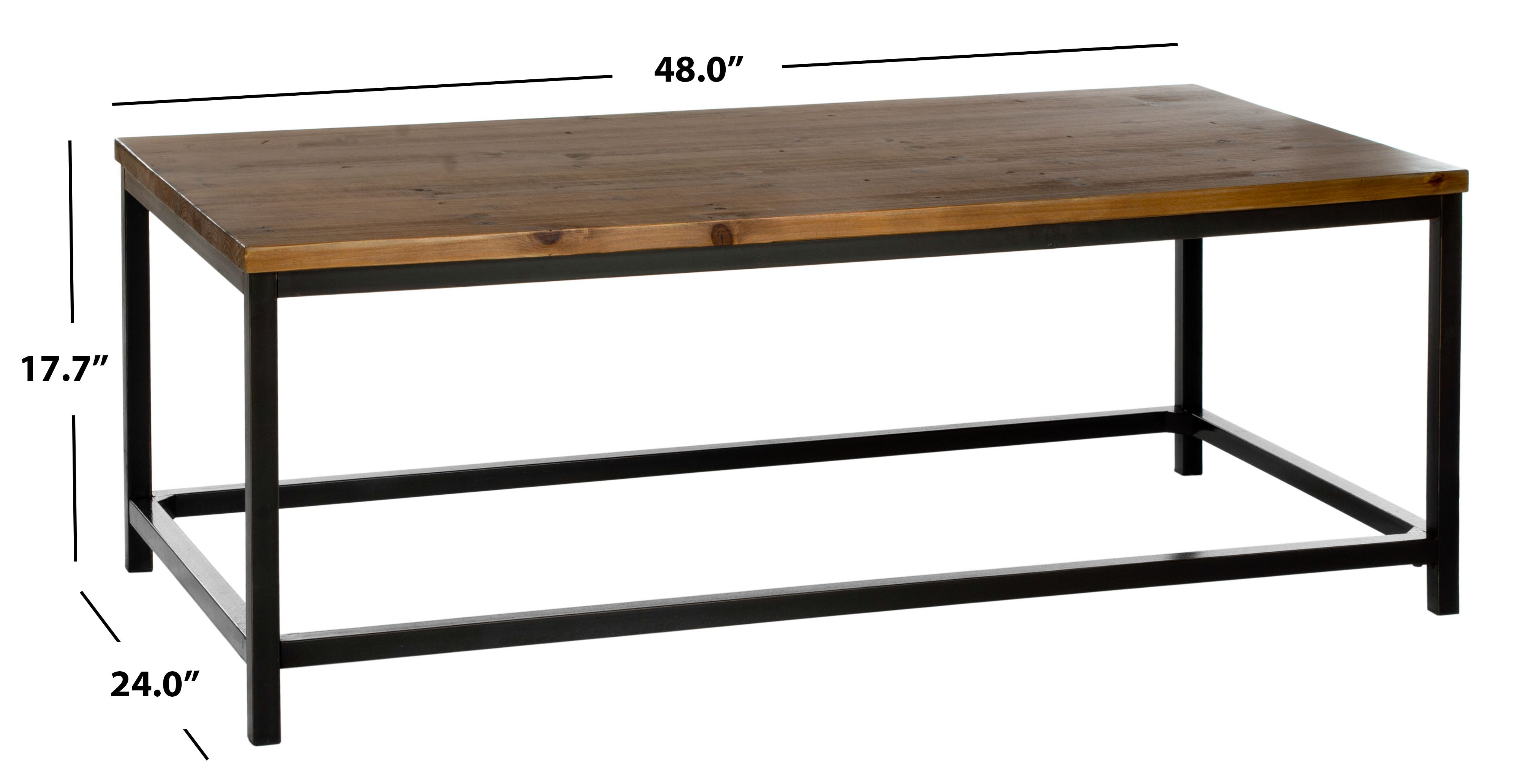 Give your décor an industrial chic edge with this Maurice Coffee Table. Maurice's smooth wood surface in a brown pine finish is the perfect counterpoint to its open black metal frame. For an eclectic curated look, pair Maurice with more traditional accent accessories.