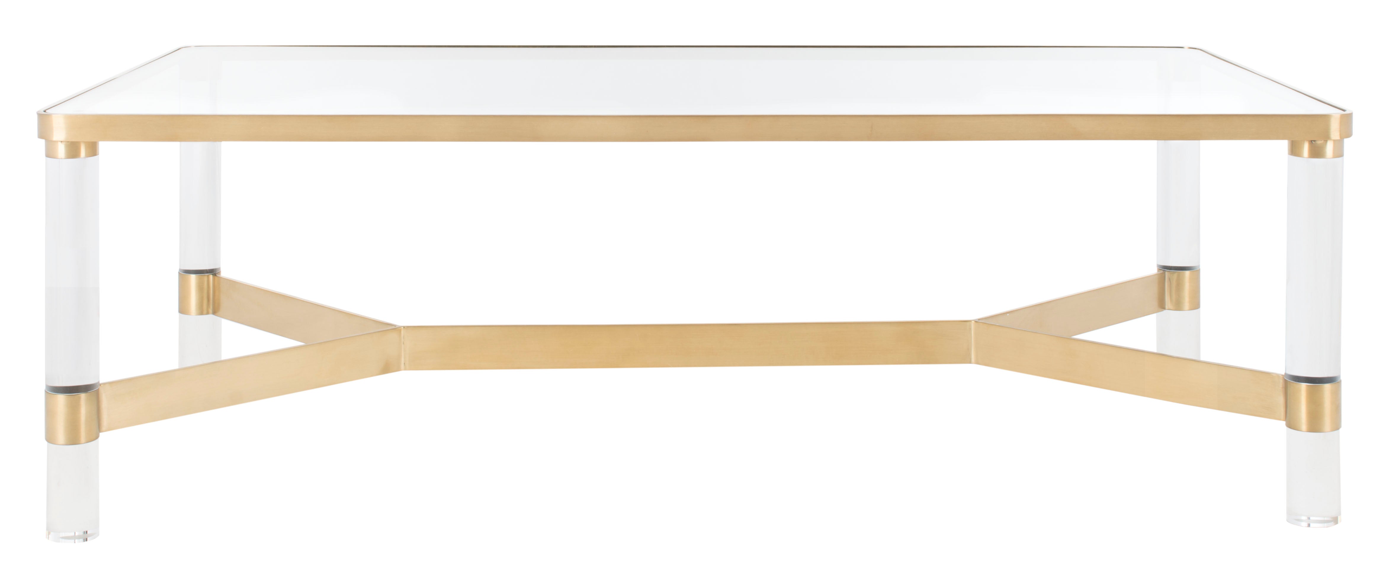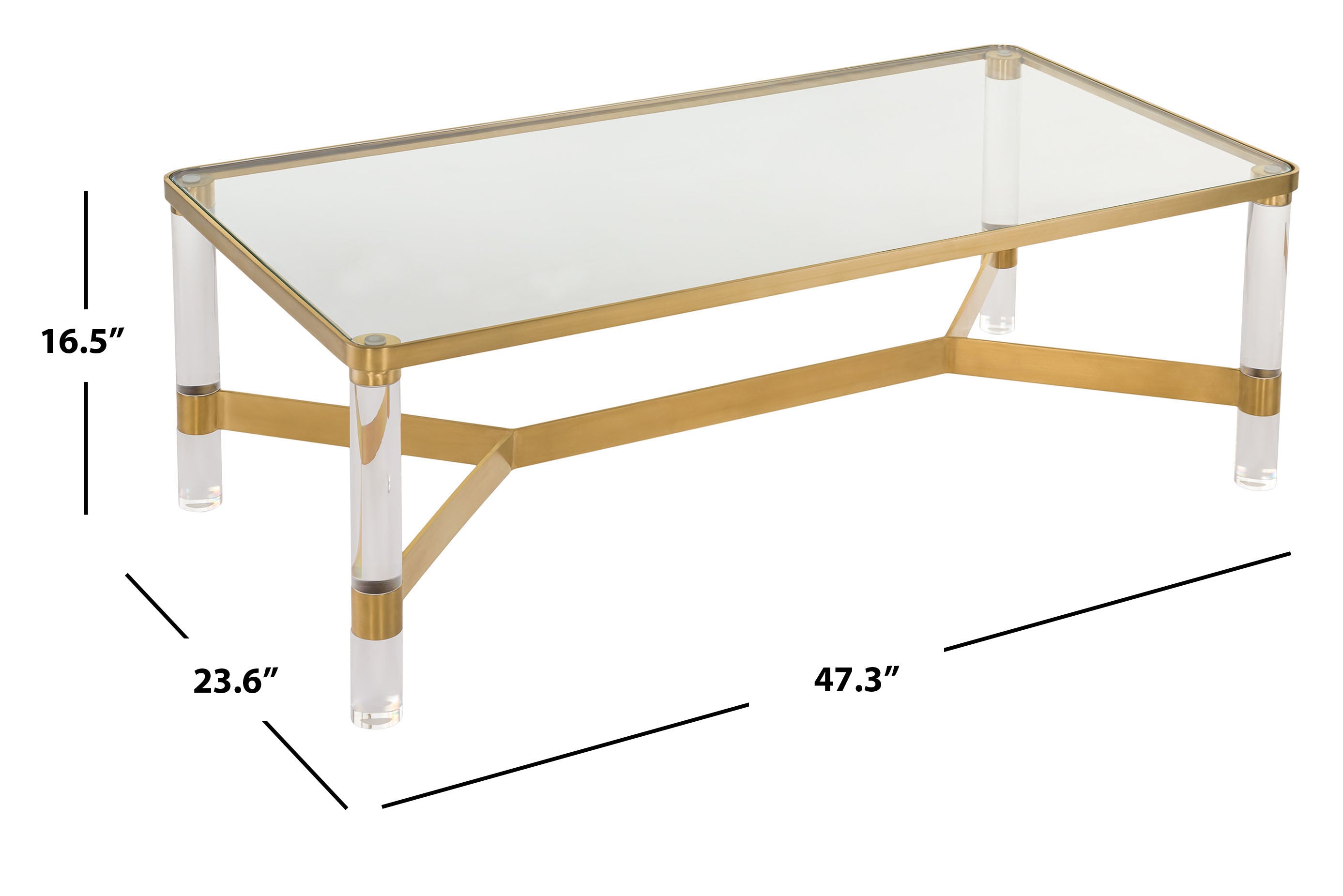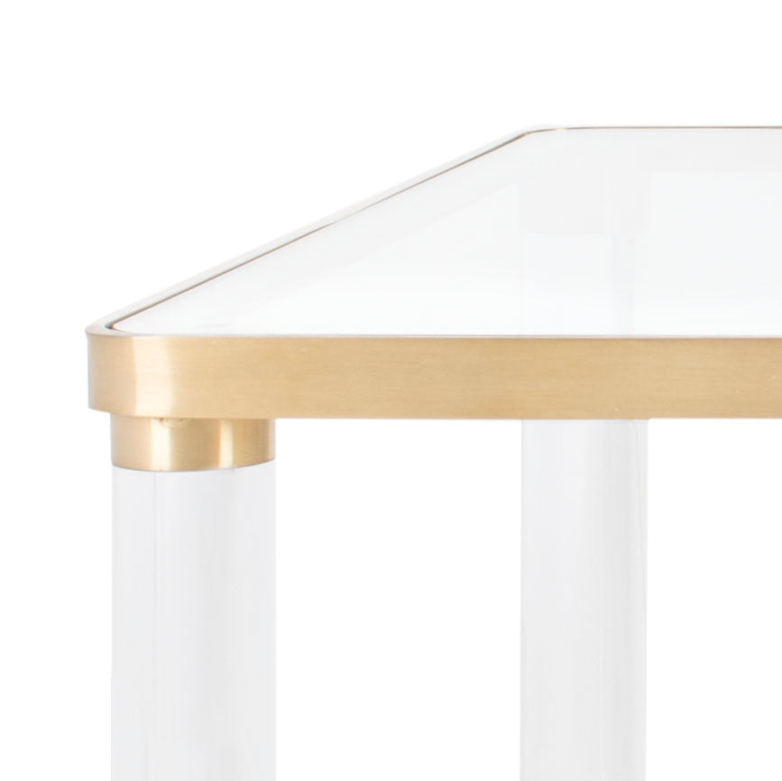 A refined yet extravagantly haute design, this Mila Coffee Table revels in the good life. Crystal clear glass and acrylic recreate the glam seventies style for today’s contemporary interiors, while brass accents give a cosmopolitan shine.