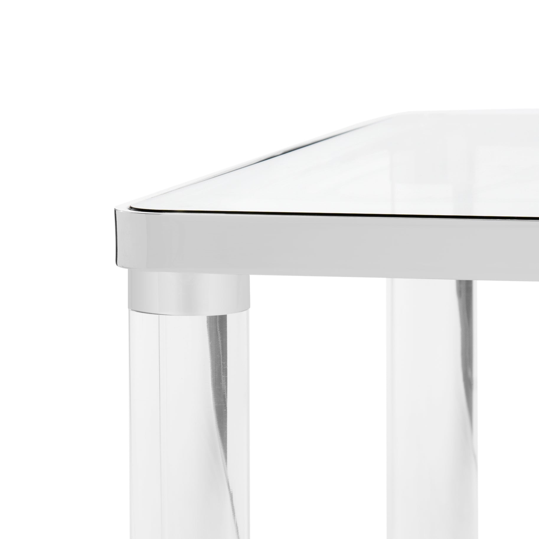 A refined yet extravagantly haute design, this Mila Coffee Table revels in the good life. Crystal clear glass and acrylic recreate the glam seventies style for today’s contemporary interiors, while chrome accents give a cosmopolitan shine.