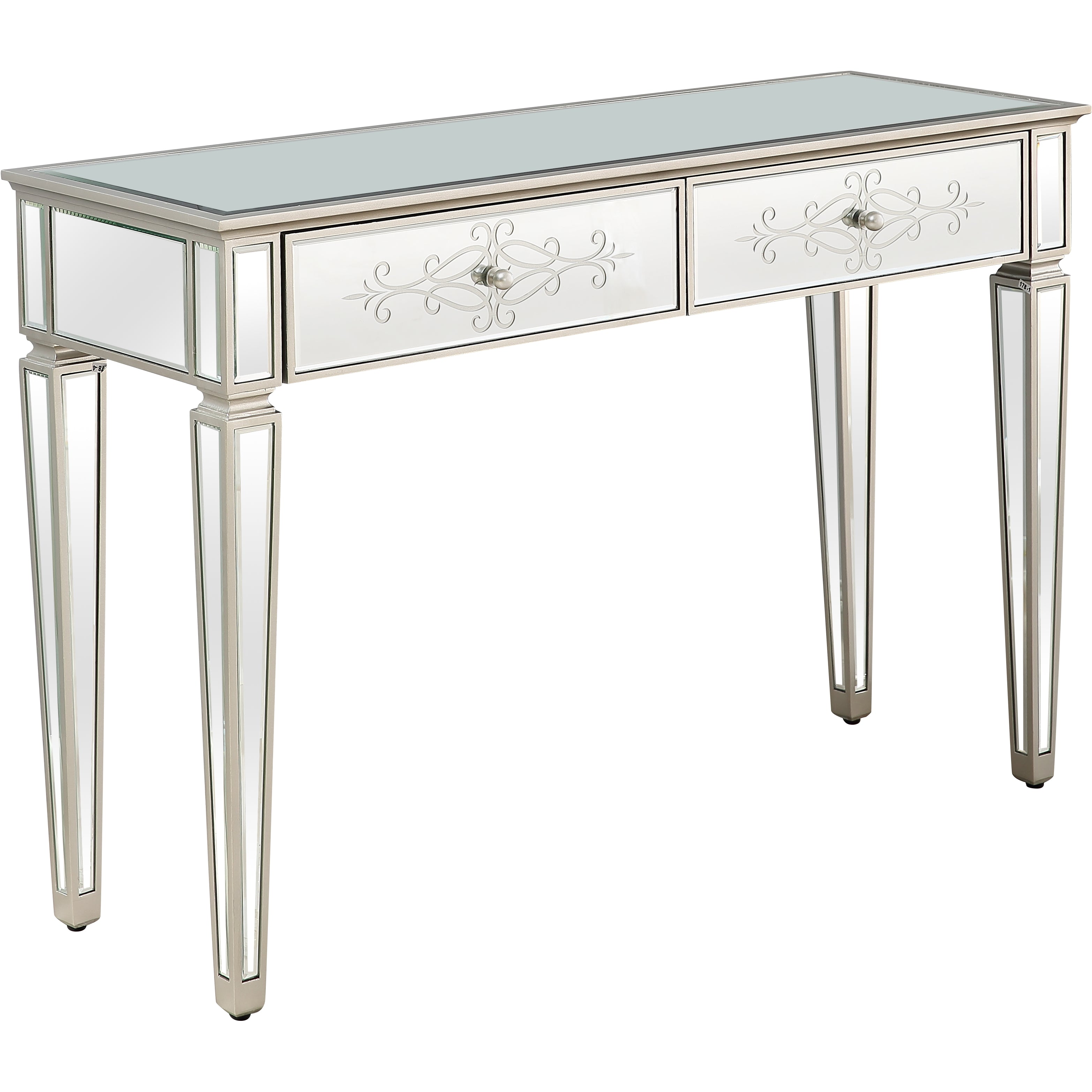 If you're all about the details, the Miriam Console may be the perfect solution for that empty space in your home. The Miriam Console adds classic charm, with its etched design along each drawer, and contemporary appeal with its chic features everywhere else. With over 47 inches of surface area, the Miriam Console provides the perfect platform to display your treasured collectibles. Unbox your best objet d'art and let the Miriam Console do the rest.