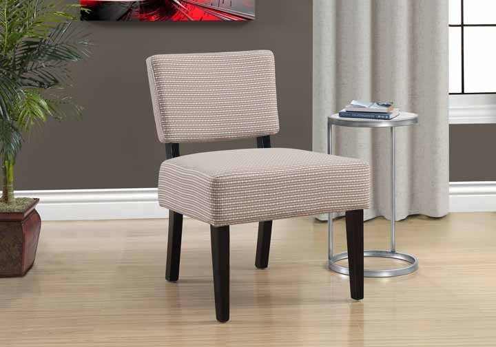 Upholstered in a durable fabric with a soft smooth textureComfortable and sturdy wide cushioned seat and backSolid wood contrasting black frame and legs for strong supportContemporary design in a trendy dark brown colorVersatile slipper chair for any room and easy to assemble