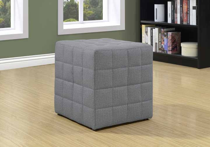 Enjoy class and top-notch style with this versatile cube shaped ottoman. The rich quilt design includes a durable light grey linen-look upholstery. The exquisite tufted cushioning provides perfect comfort and can conveniently be used as a foot rest, extra seating, or as an accent piece for any room in your home.