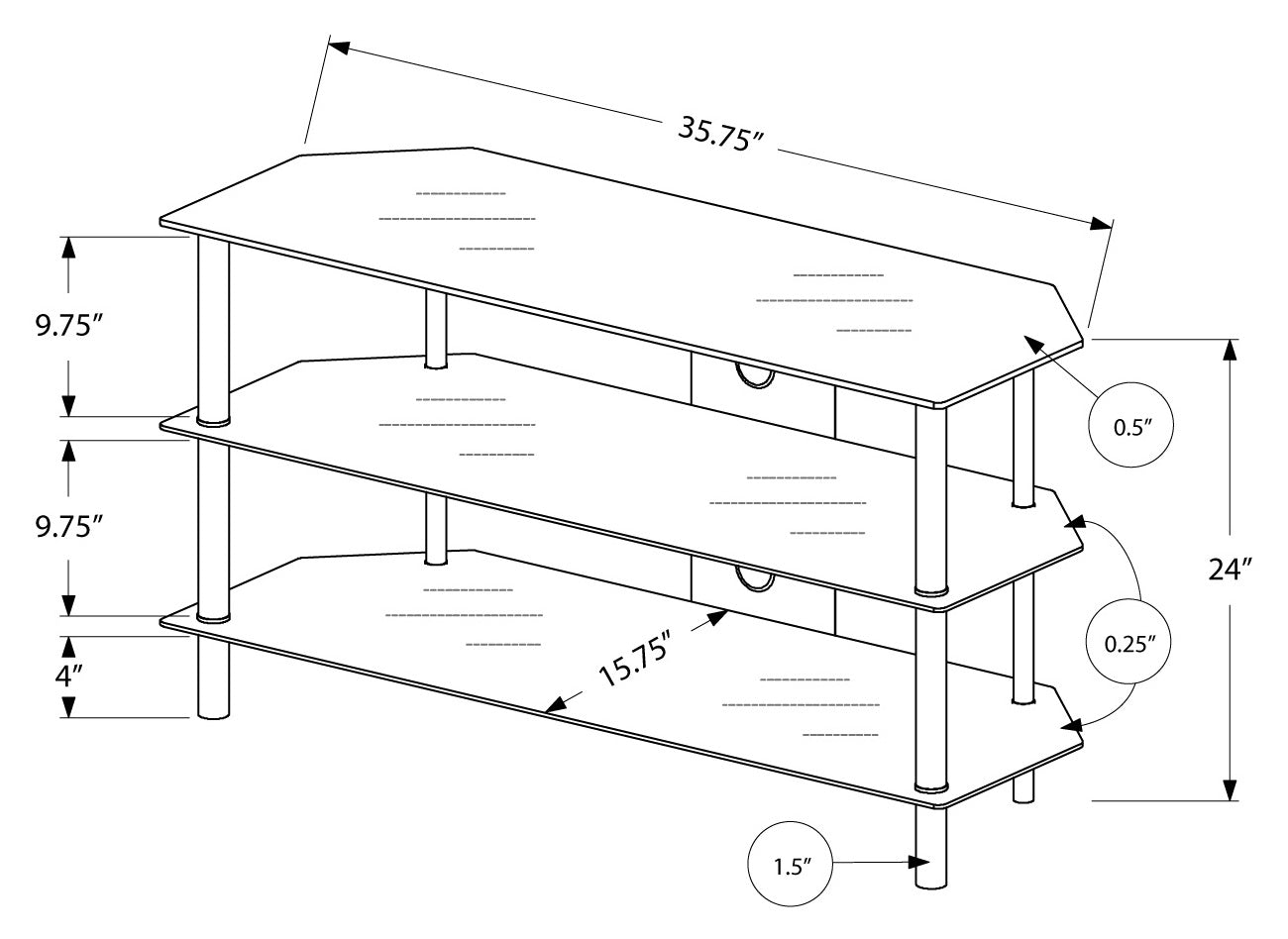 Whether it's time to liven up a room's entire look or you just want to update your entertainment center, this sleek, contemporary design is a smart choice. This stand features three open, tempered-glass shelves to help organize your media needs. Ideal for smaller spaces, this stand can be used against the wall or can fit into a corner. Accommodates all TV sizes with a center stand.