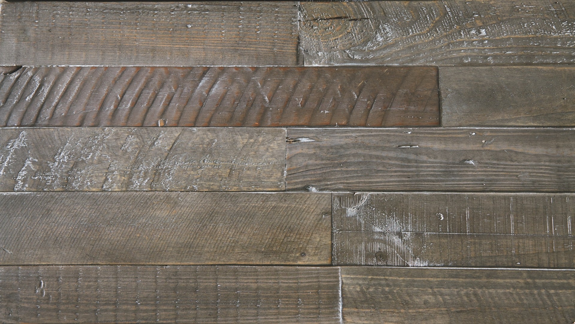 Made of reclaimed pine, solid pine, engineered wood, veneers and metal