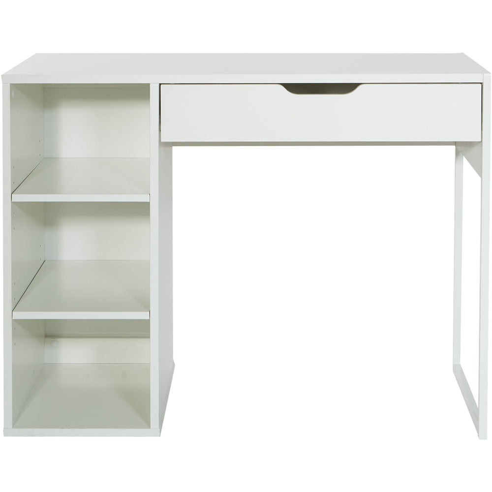 Elevate your study with this white OSP Home Furnishings Ravel writing desk. The 40-inch surface provides ample study space while the two adjustable shelves and three open areas offer convenient storage for a variety of small items. This stylish OSP Home Furnishings Ravel writing desk is made of mixed-wood shelving and a metal frame for a modern look.