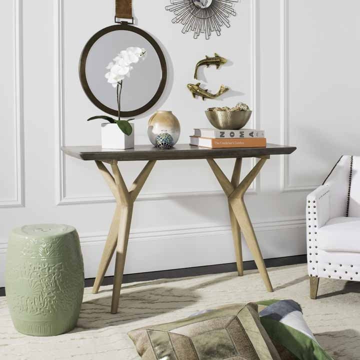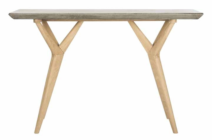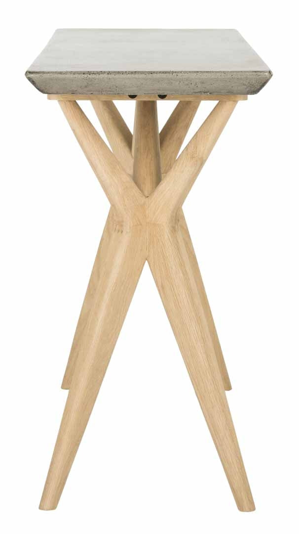 Poised with sculptural presence, this concrete indoor-outdoor console brings character to any space. Its luxurious dark grey hue and rich texture are paired with a natural oak finish, creating a focal point for the living room, foyer or outdoor area.