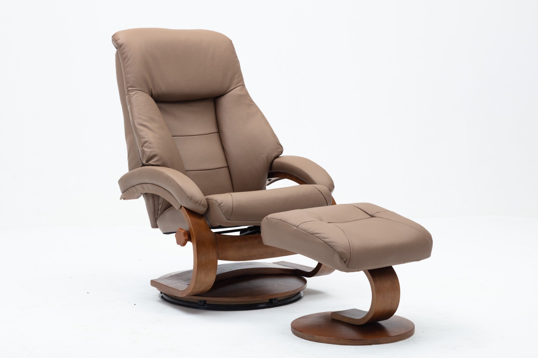 Relax-R™ Montreal Recliner and Ottoman in Sand Top Grain Leather
