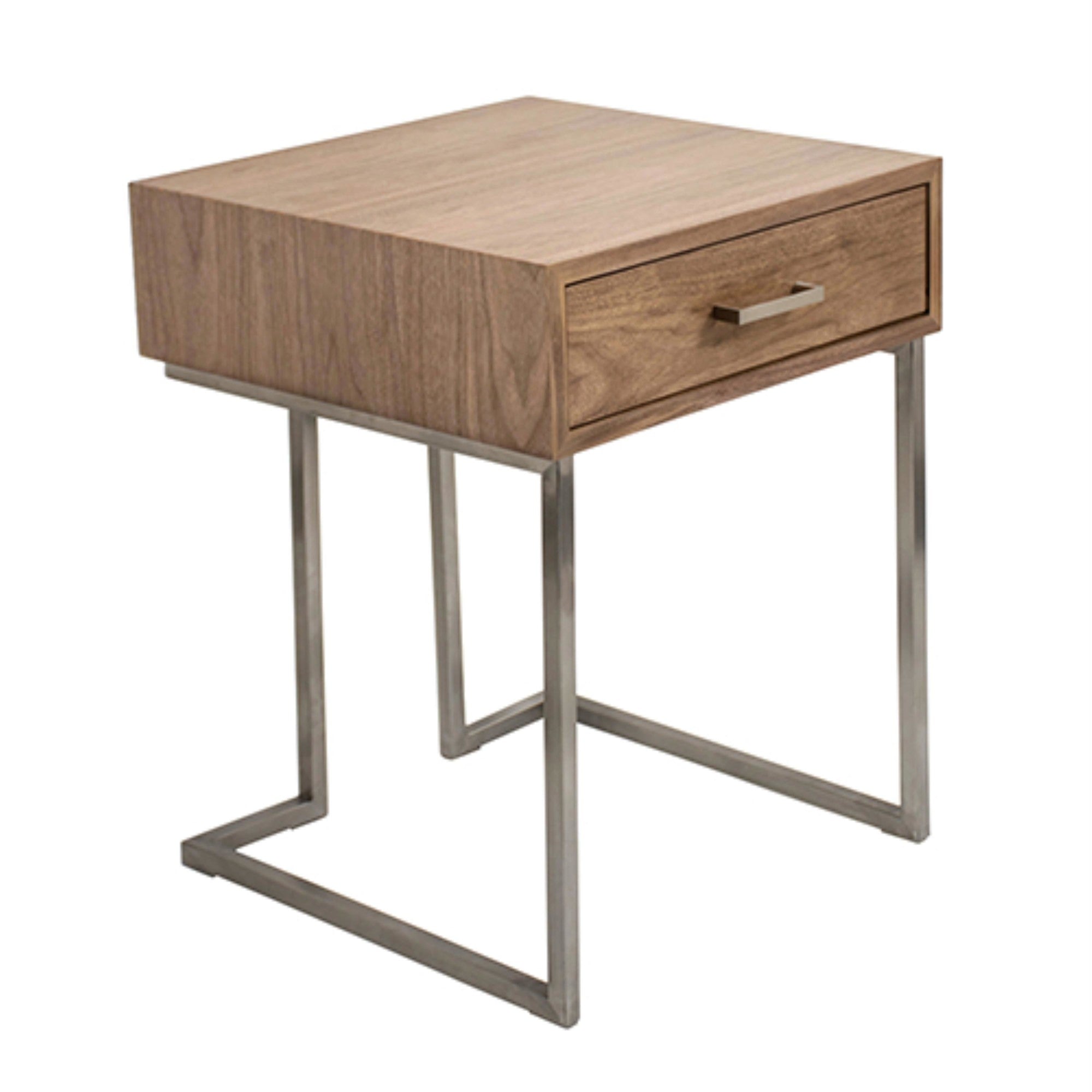 Roman Contemporary End Table in Walnut Wood and Stainless Steel by LumiSource