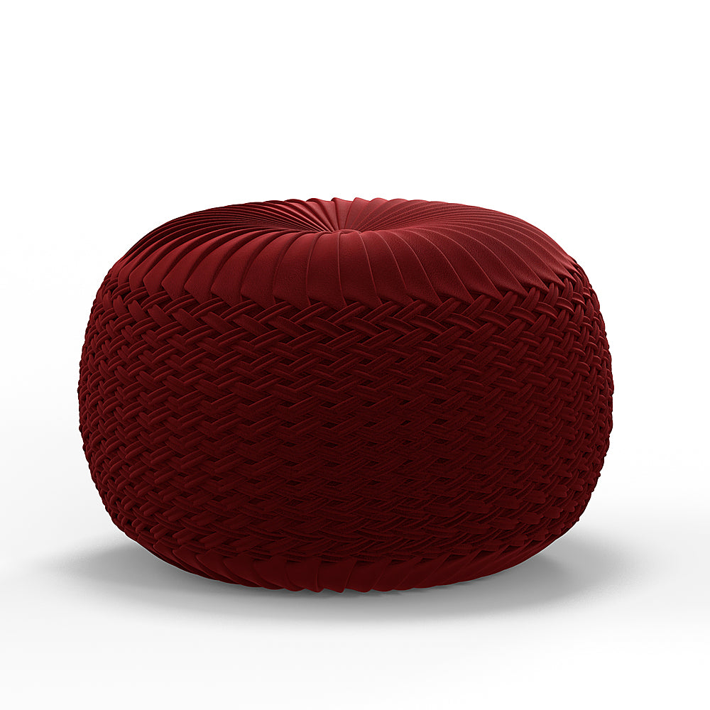 Simpli Home - Grafton Velvet Round Pouf - Maroon