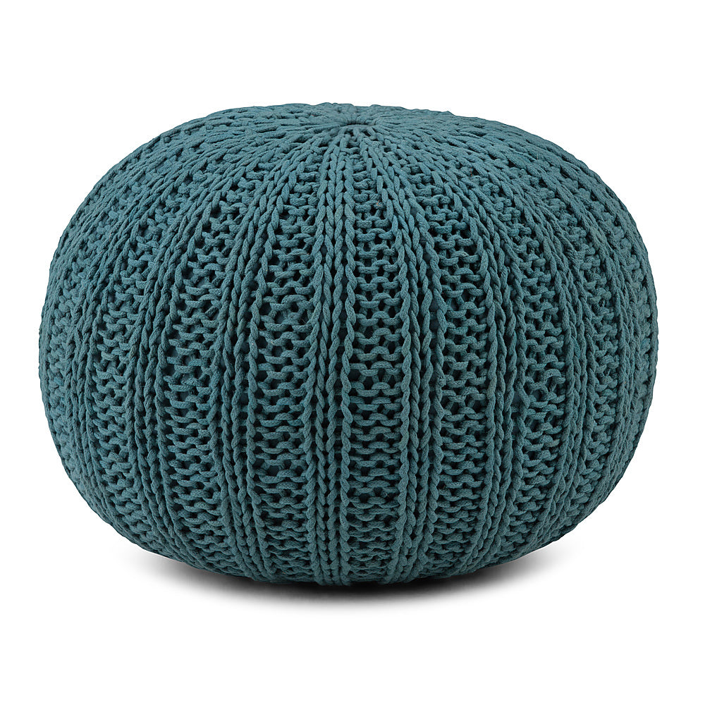 Simpli Home - Shelby Hand Knit Round Pouf - Teal