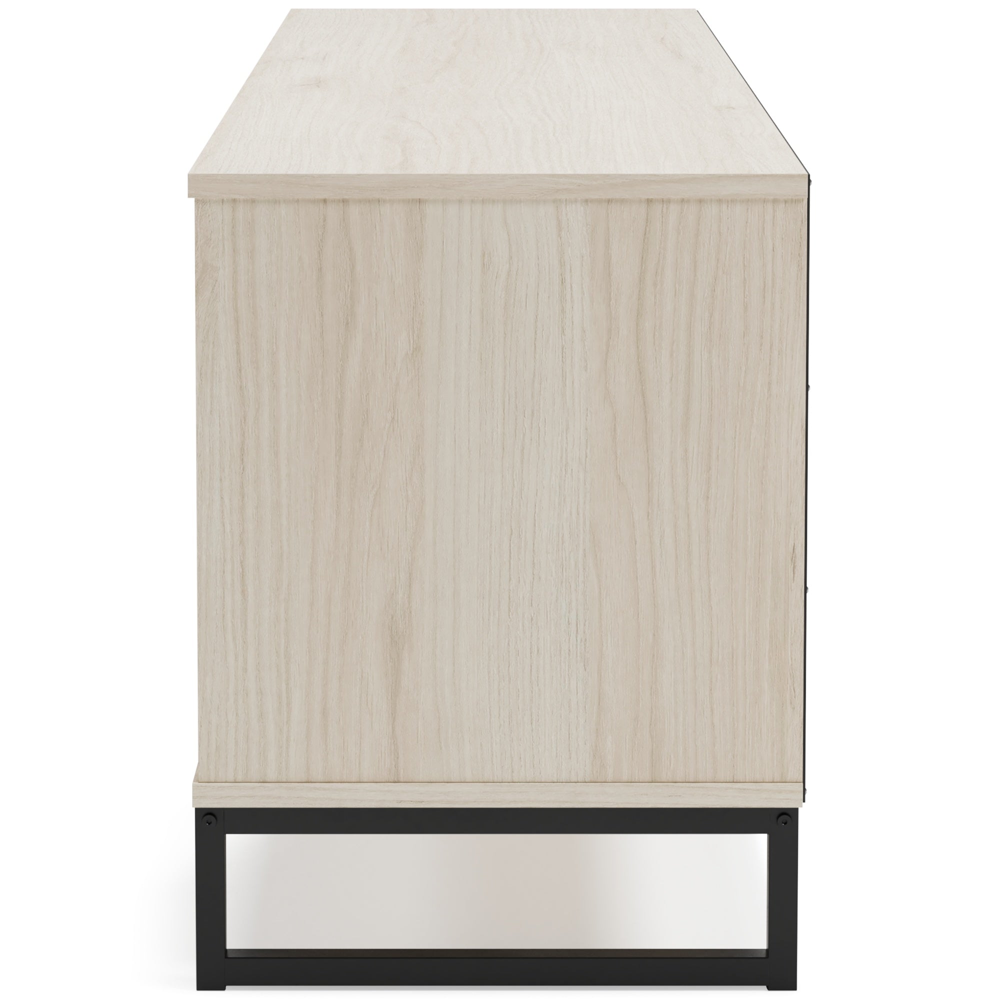 Light and bright, the Socalle TV stand is inspired by chic design. A natural finish over replicated oak grain offers an authentic touch to this piece. Open shelving and two smooth-gliding drawers provide handy storage, while metal legs and pewter-tone handles bring an edgy flair.