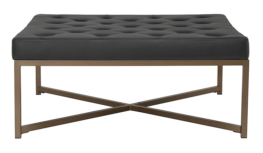 The Camber Square Ottoman by Studio Designs Home offers a multipurpose and stylish design for your guests. The large tufted top provides the perfect living room seating arrangement. Crafted with a durable powder-coated metal frame and foam-filled bonded leather upholstery it's the modern centerpiece for your living room. Providing the perfect spot to rest your feet seating for gatherings or even as an extra table when used with a serving tray this ottoman completes your home. Available in Black White or Caramel