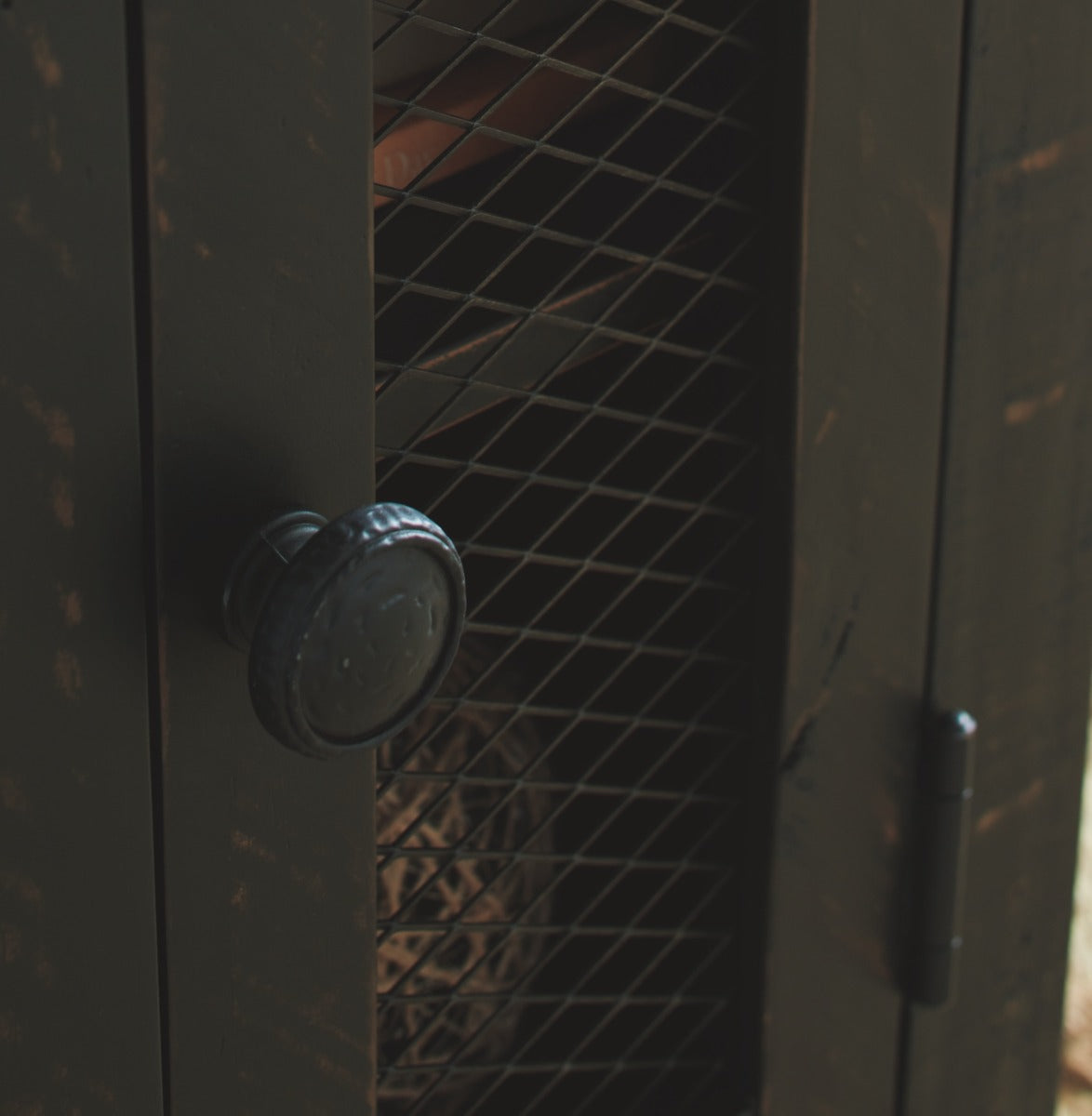 Single door cabinet with metal grill and hardware