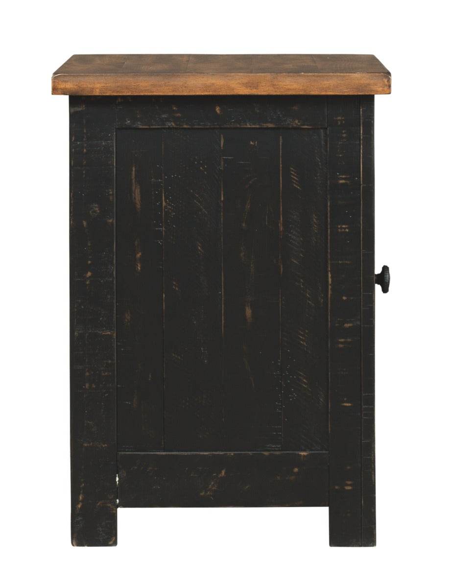 To those with an eye for the best in rustic farmhouse living, this two-tone chairside end table doubles up on charm. Designer touches include plank-effect styling, distress marks and a wire mesh door front for added character.