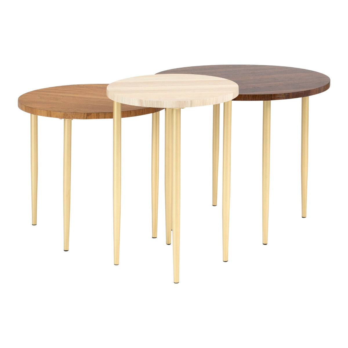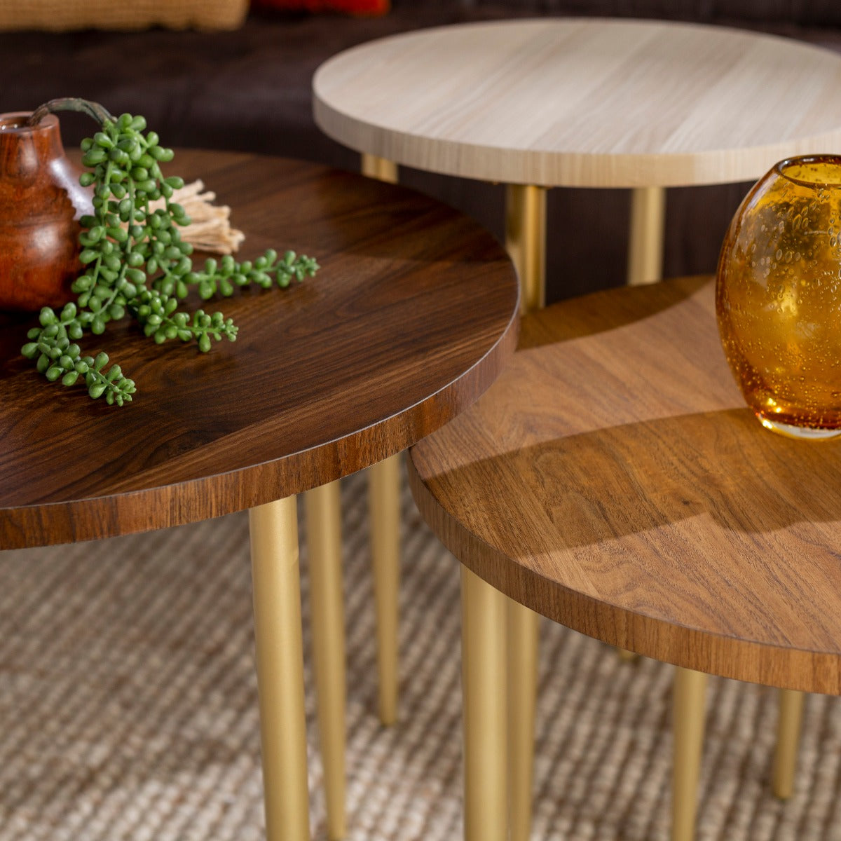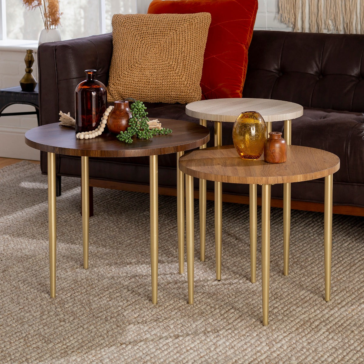 Walker Edison 3 Piece Round Nesting Coffee Table Set - Dark Walnut