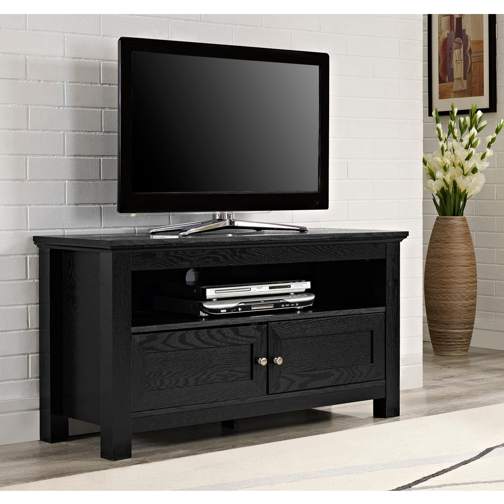 Provide a beautiful centerpiece for your home entertainment with this 44 wood TV console. Crafted from high-grade MDF with a durable laminate finish supports TVs up to 48". Features open and concealed shelving for ample storage space with a cable management system to help you maintain a tidy appearance.