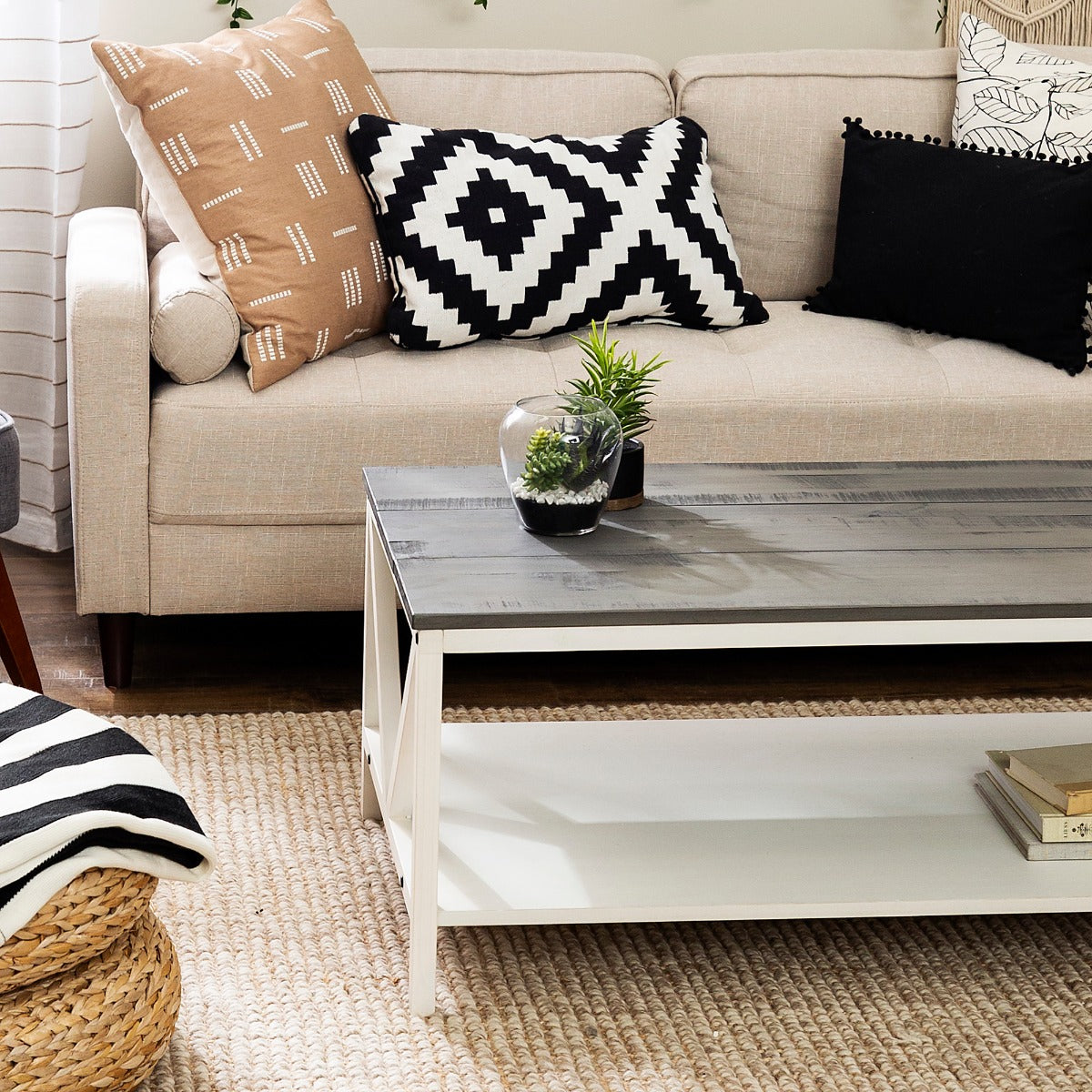 Walker Edison 48" Distressed Farmhouse Coffee Table - Grey/White Wash