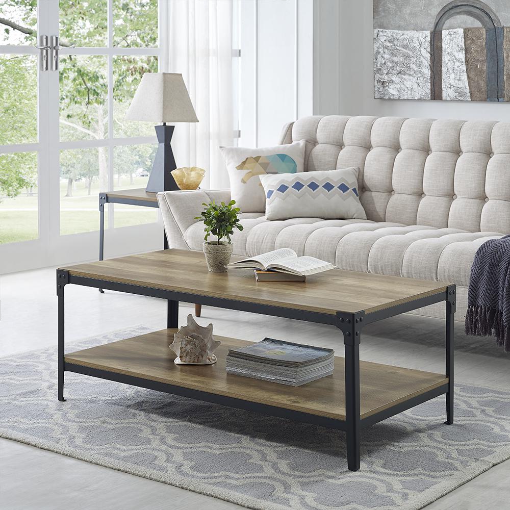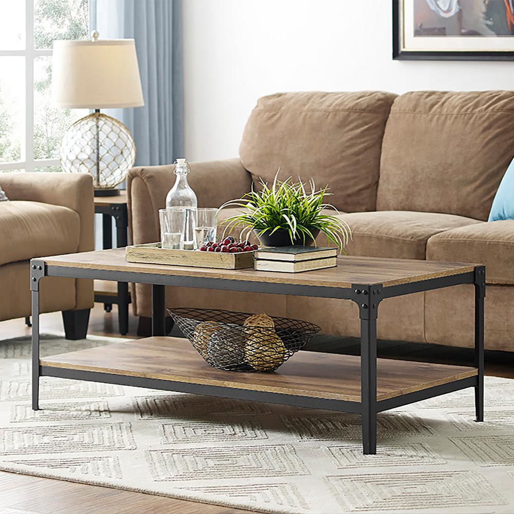 Give your living space a beautiful centerpiece with this beautiful, rustic coffee table. It's the perfect foundation for your morning coffee, magazines, books, or accessories. Constructed of powder coated metal and durable wood for a sturdy, stylish design. Dress it up or keep it simple, it looks great either way.