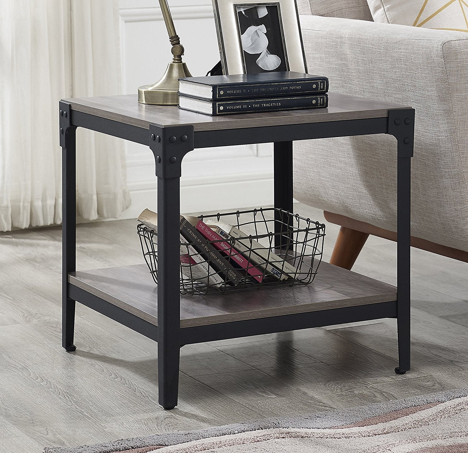Accentuate your home decor with our rustic end tables, made of powder coated metal and wood with a beautiful rustic finish. They will complement any room in your home; use them to showcase books, decor, or accessories. These handsome tables are the perfect addition.