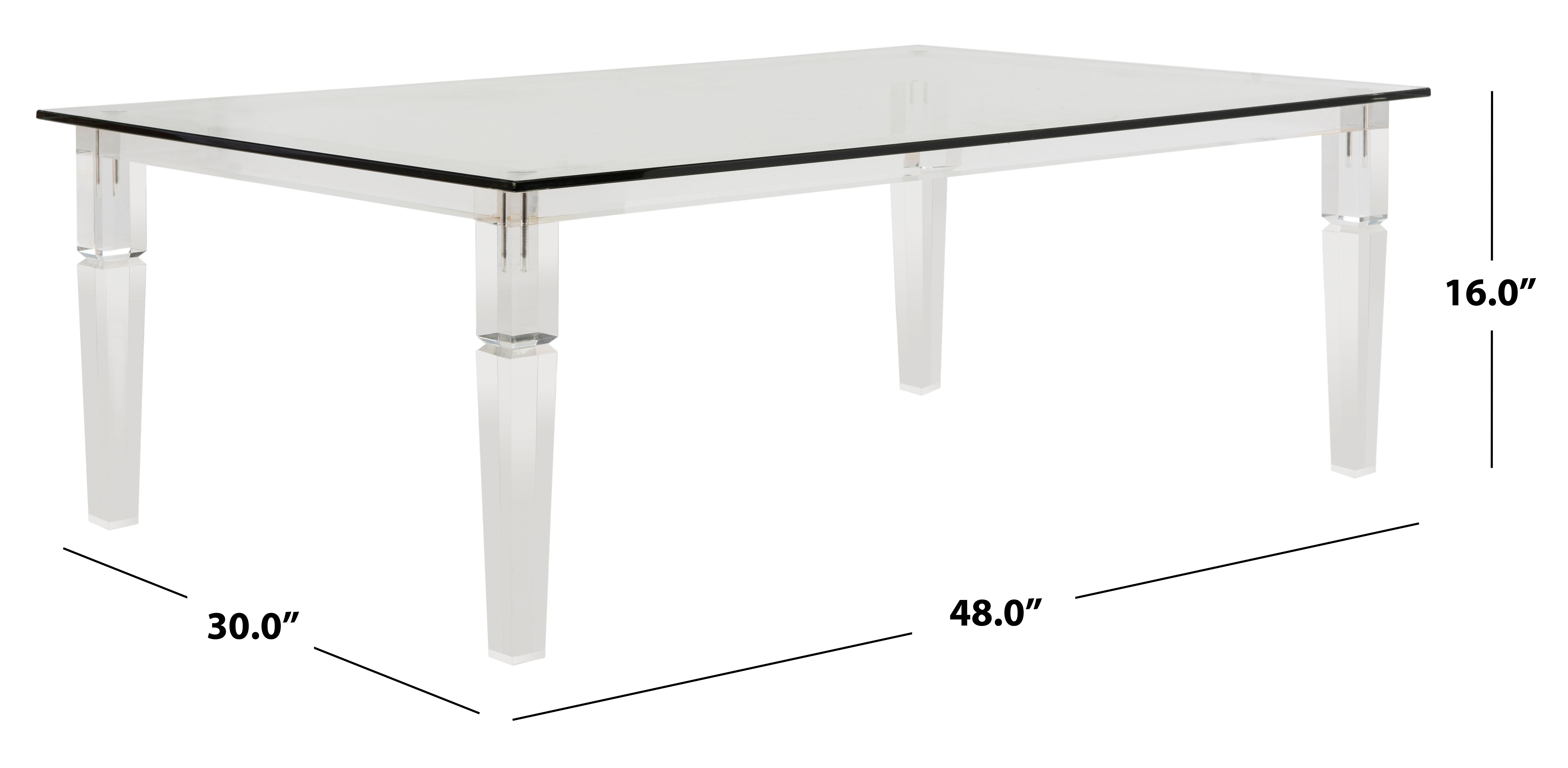 Ethereal and chic, this contemporary Wesley Coffee Table is a new classic. A stunning canvas for any living room, Wesley is perfect for displaying treasures or holding beverages. Its crystal clear glass top and iconic acrylic legs bring a stylish air to any living space.