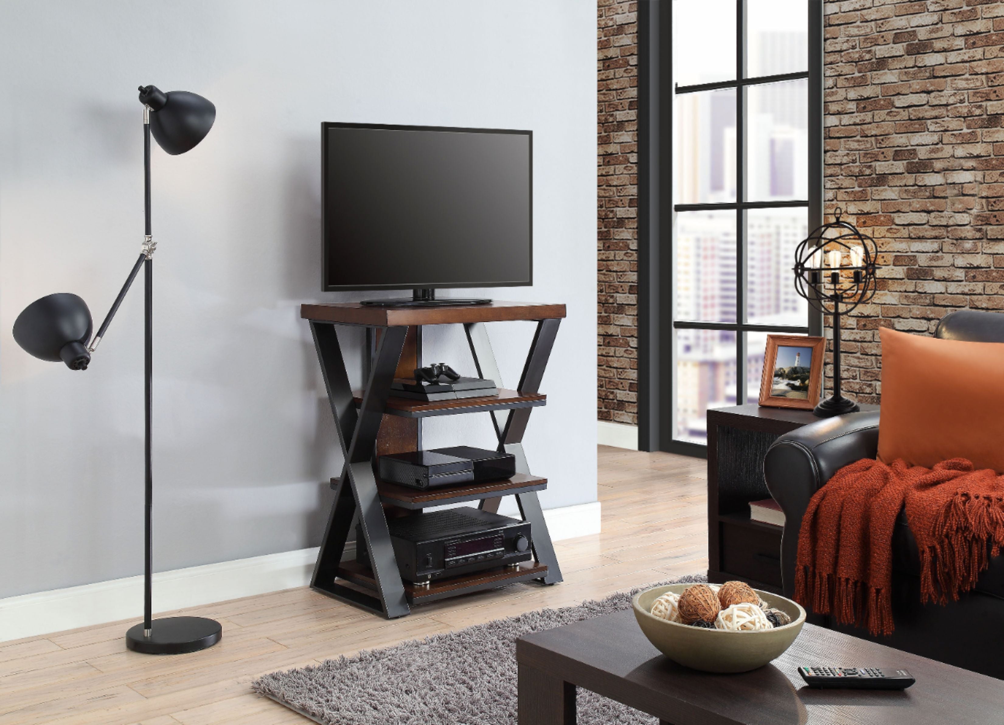 Organize your entertainment space with this four-tier Whalen audio-video tower. The top shelf fits flat-panel displays up to 32 inches and has an integrated stopper to guide TV placement and prevent tipping. Each lower shelf of this Whalen audio-video tower has a 50-lb. capacity to hold additional components and media.