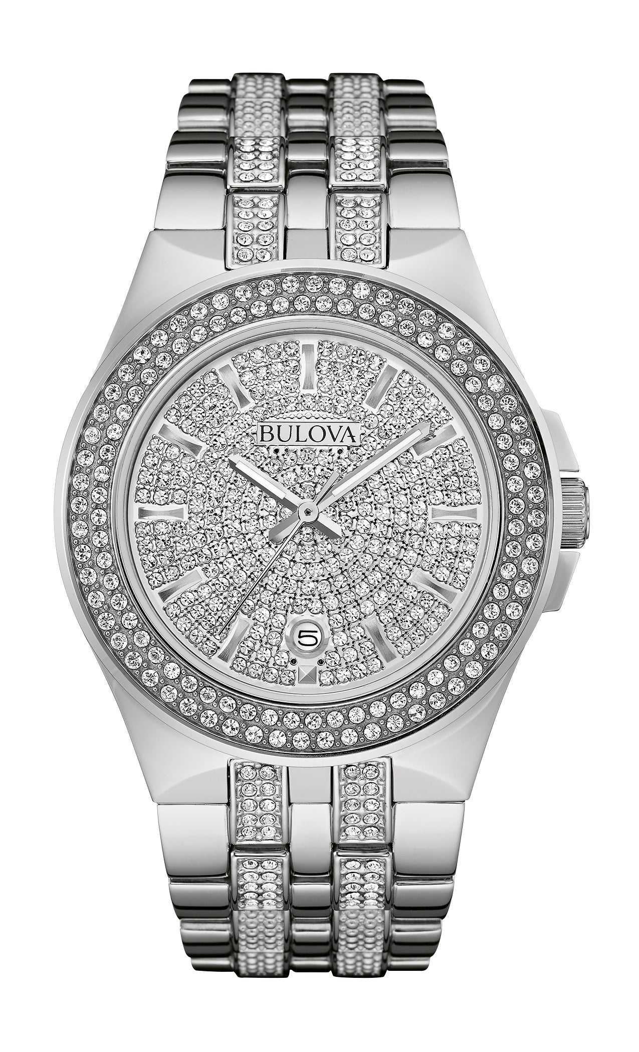 Bulova Mens Silver-Tone Crystal Watch, Crystal Dial