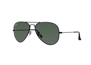 Features a distinctive teardrop lens shape, polarized lenses, a full-rim metal aviator frame, a double bridge style, adjustable nose pads, UVA/UVB protection, and is 58mm wide with 14mm bridge and 135mm temple length.